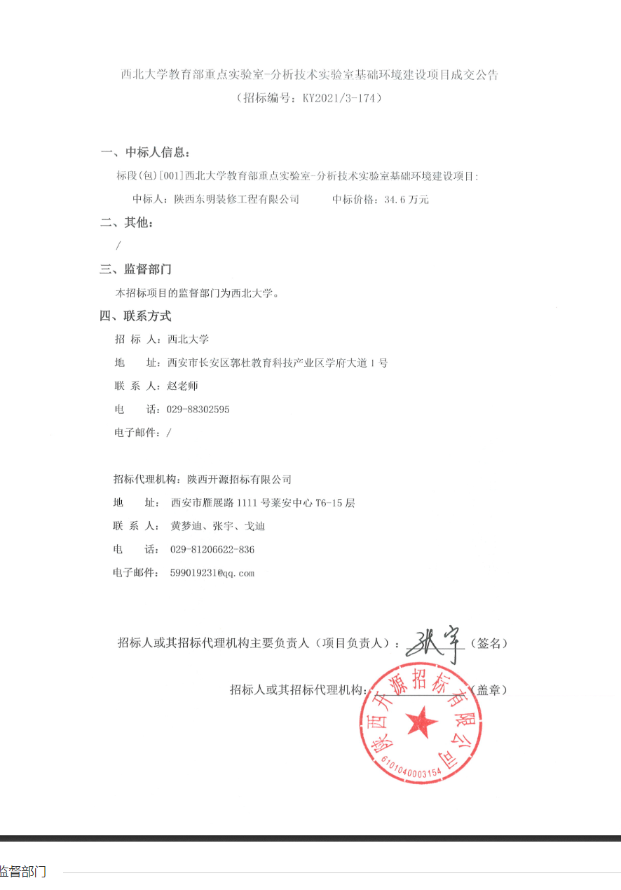 开云手机网页版登录入口教育部重点实验室-分析技术实验室基础环境建设项目成交公告