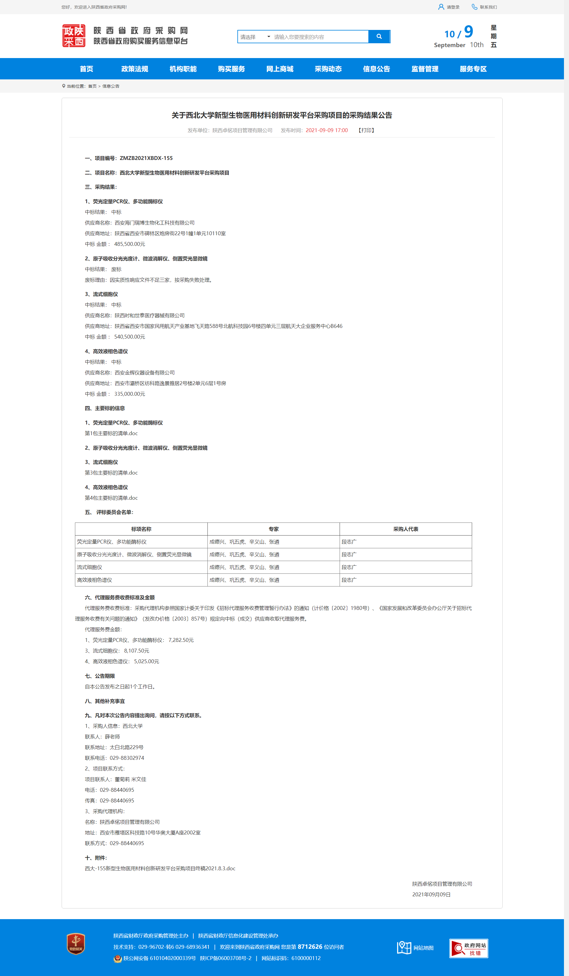 关于开云手机网页版登录入口新型生物医用材料创新研发平台采购项目的采购结果公告 作者: 编辑:采购与招标办公室 时间:2021-09-10 原公告地址:http://www.ccgp-shaanxi.gov.cn/notice/noticeDetail.do?noticeguid=8a85be347bc00296017bc9c746595f00