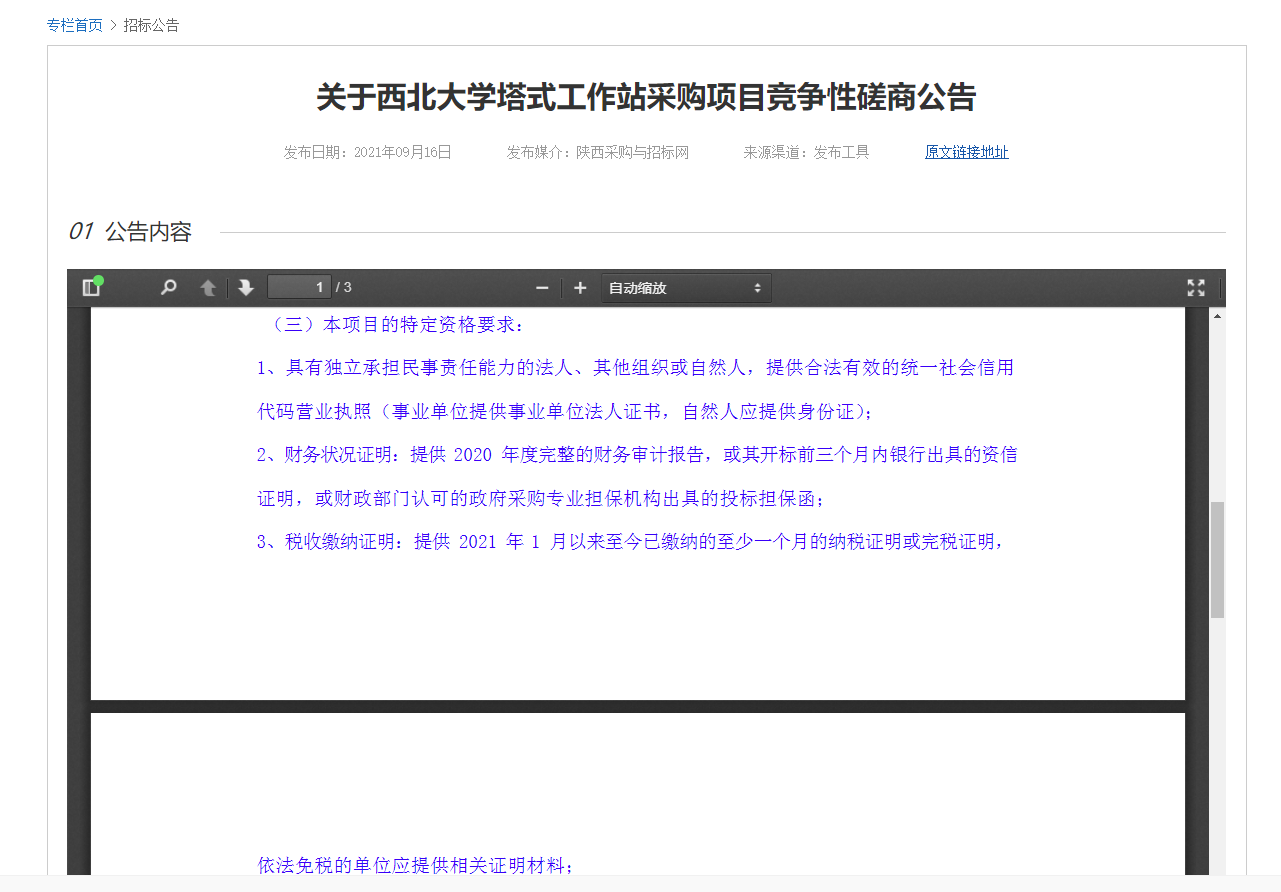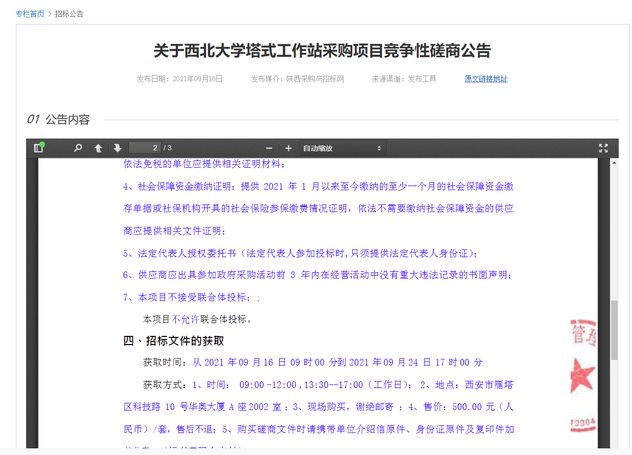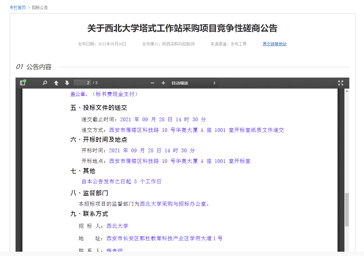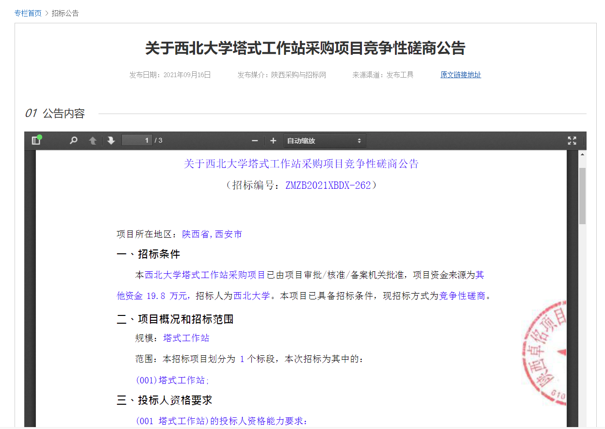 关于开云手机网页版登录入口塔式工作站采购项目竞争性磋商公告 作者: 编辑:采购与招标办公室 时间:2021-09-17 原公告地址:http://bulletin.sntba.com/biddingBulletin/2021-09-16/343853.html
