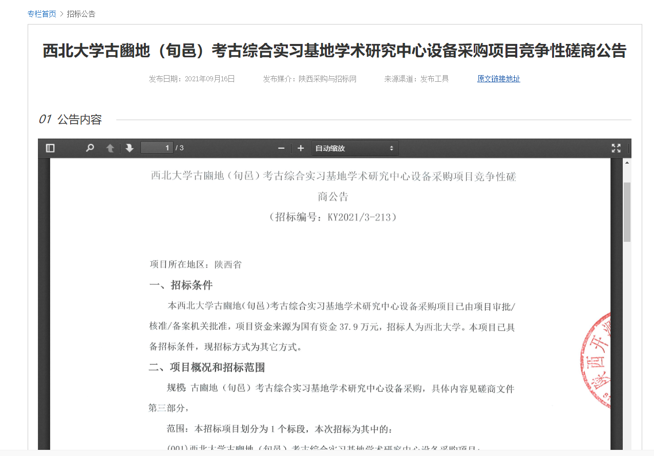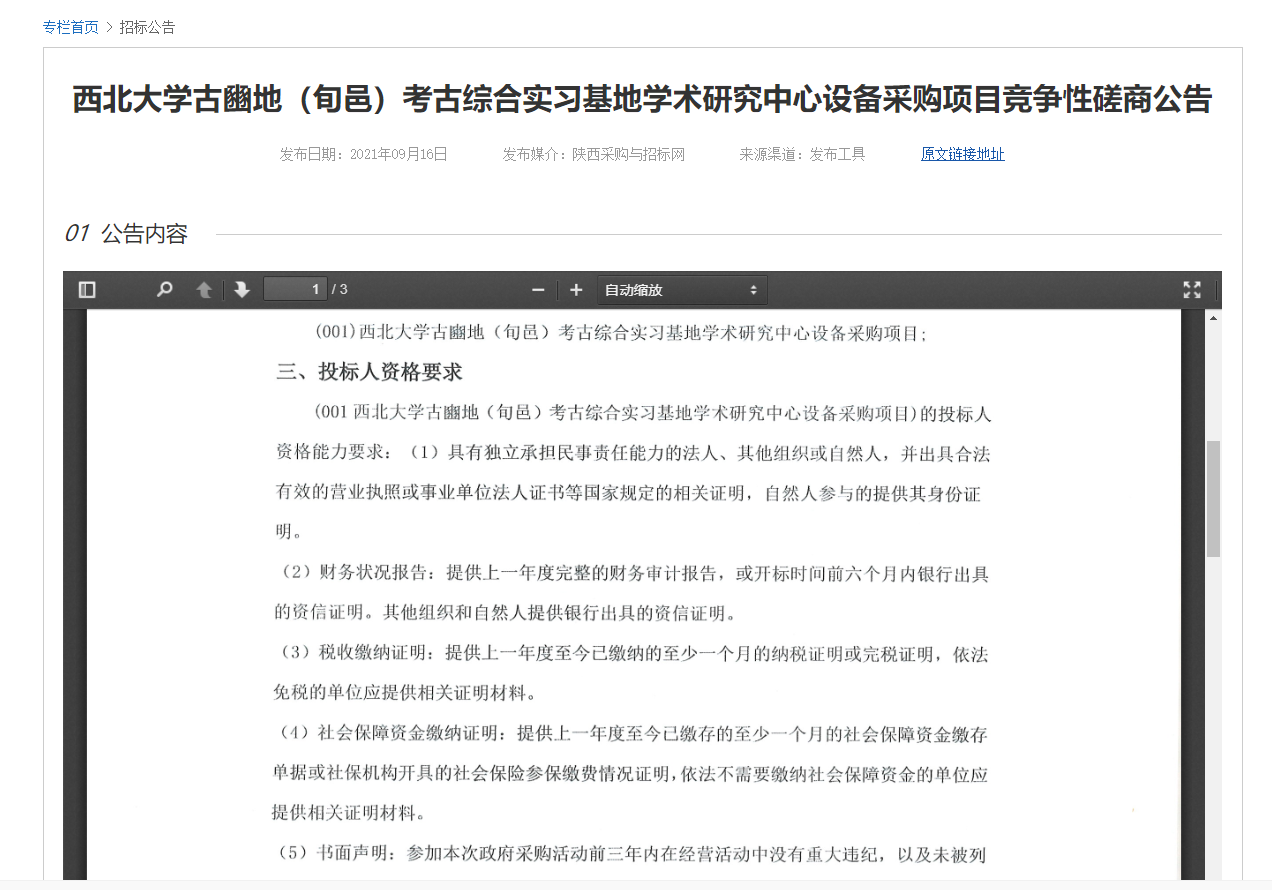 开云手机网页版登录入口古豳地(旬邑)考古综合实习基地学术研究中心设备采购项目竞争性磋商公告 作者: 编辑:采购与招标办公室 时间:2021-09-17 原公告地址:http://bulletin.sntba.com/biddingBulletin/2021-09-16/343879.html