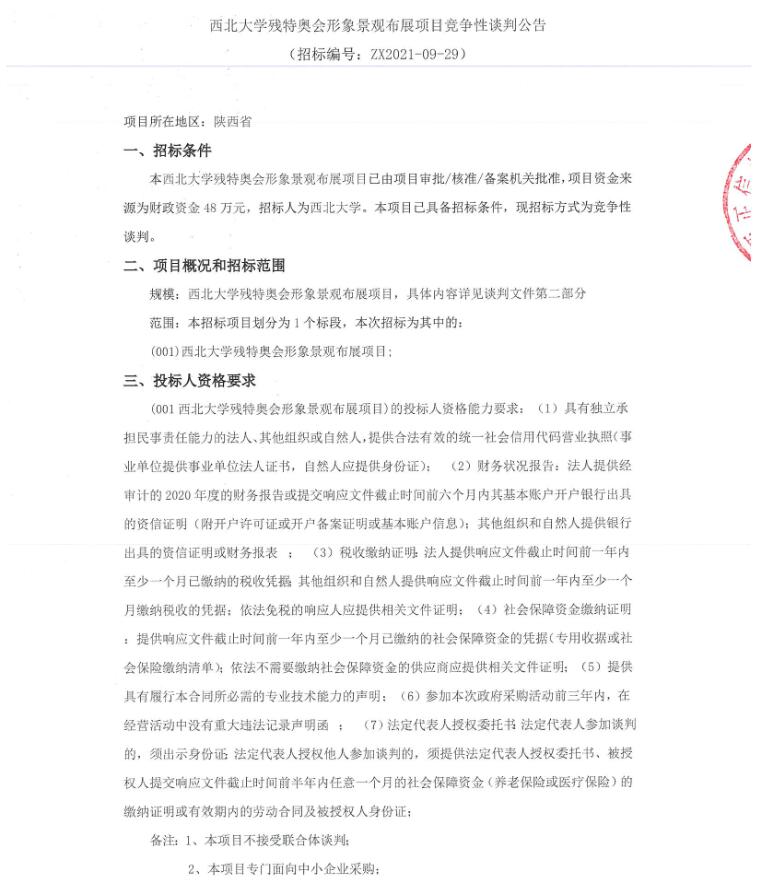 开云手机网页版登录入口残特奥会形象景观布展项目竞争性谈判公告