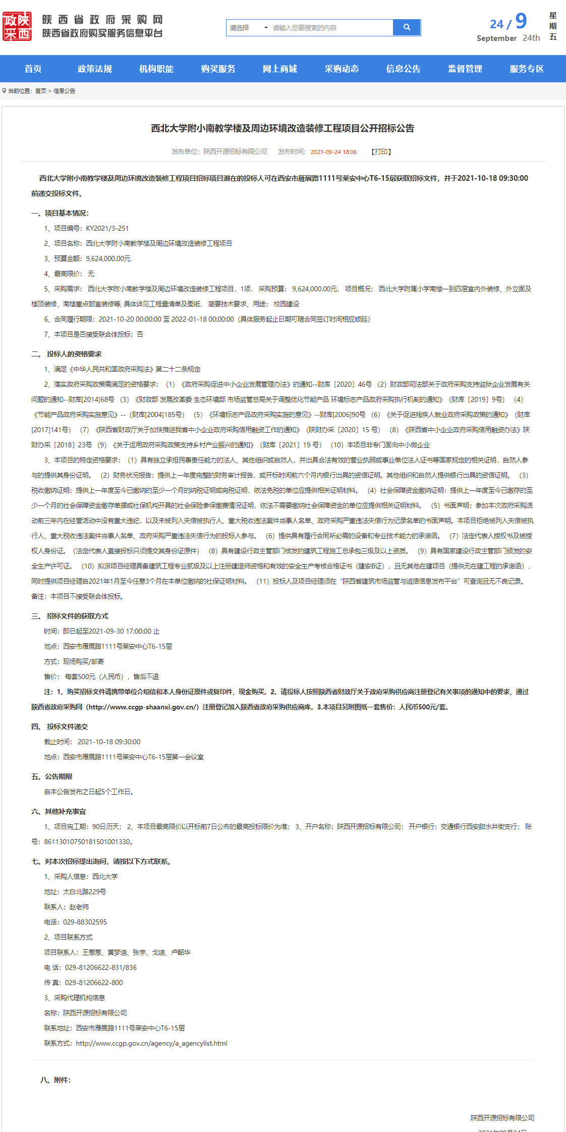 开云手机网页版登录入口附小南教学楼及周边环境改造装修工程项目公开招标公告