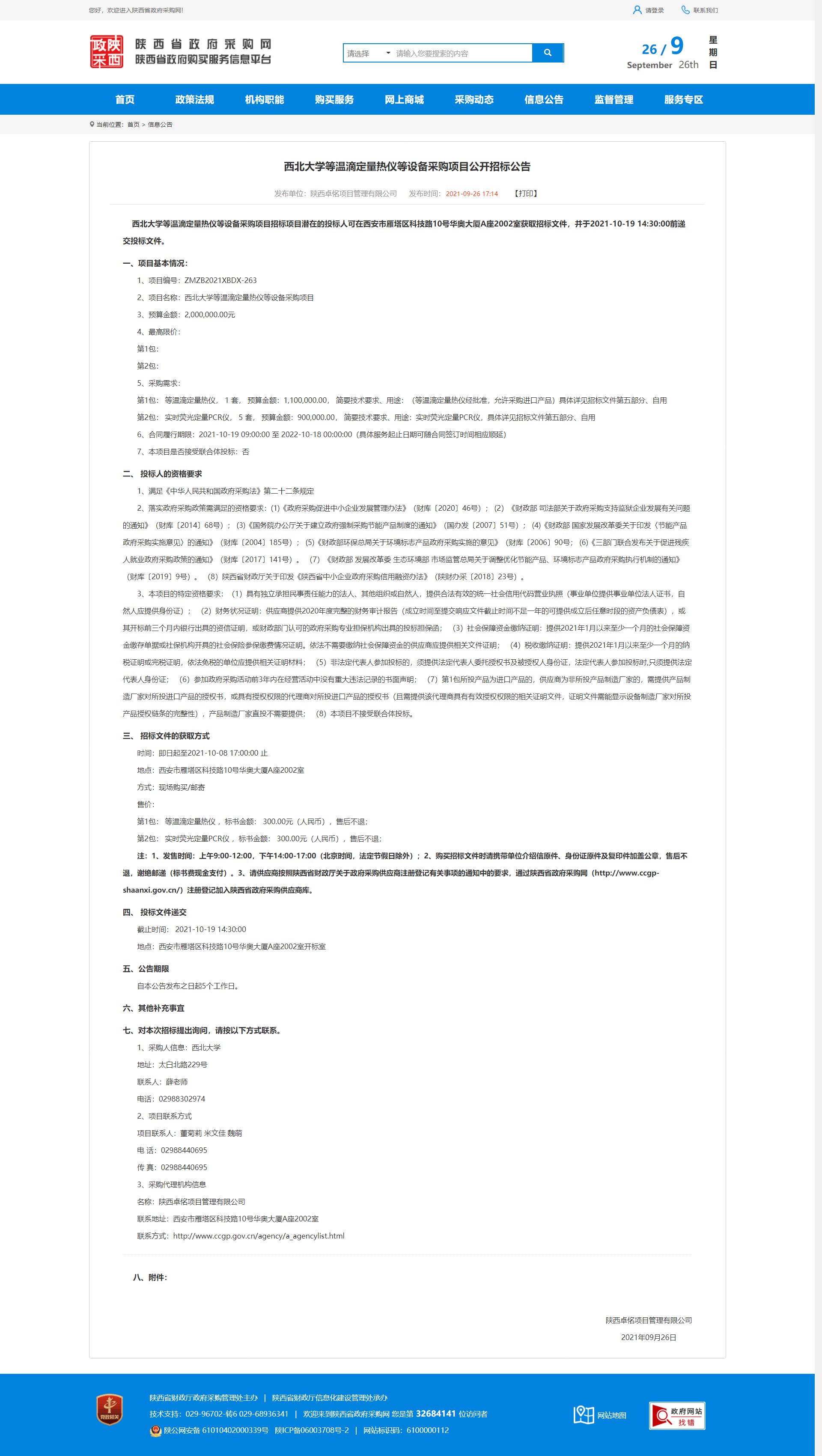 开云手机网页版登录入口等温滴定量热仪等设备采购项目公开招标公告 作者: 编辑:采购与招标办公室 时间:2021-09-26 原公告地址:http://www.ccgp-shaanxi.gov.cn/notice/noticeDetail.do?noticeguid=8a85be317c20d707017c21545fc51220