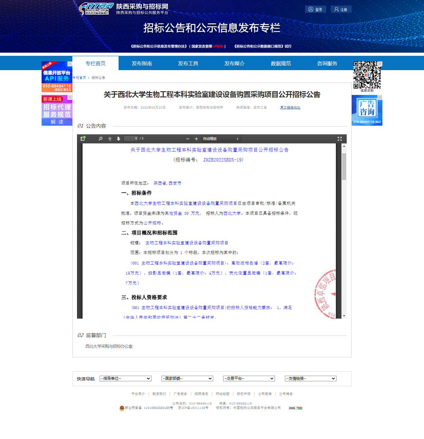开云手机网页版登录入口生物工程本科实验室建设设备购置采购项目公开招标公告 作者: 编辑:薛利娟 时间:2022-05-20 原公告链接:http://bulletin.sntba.com/biddingBulletin/2022-05-20/423538.html