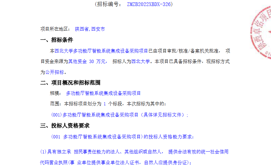 开云手机网页版登录入口多功能厅智能系统集成设备采购项目公开招标公告 作者: 编辑:采购与招标办公室 时间:2023-02-28 原公告链接:http://bulletin.sntba.com/biddingBulletin/2023-02-28/531633.html