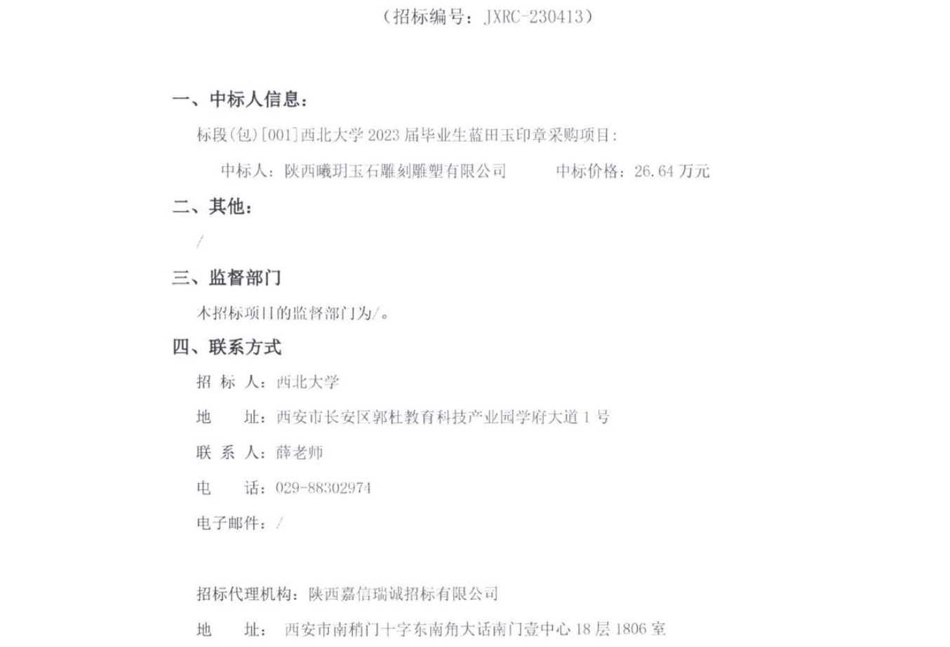 开云手机网页版登录入口2023届毕业生蓝田玉印章采购项目成交结果公告 作者: 编辑:采购与招标办公室 时间:2023-05-05 原公告链接:http://bulletin.sntba.com/resultBulletin/2023-05-05/554805.html