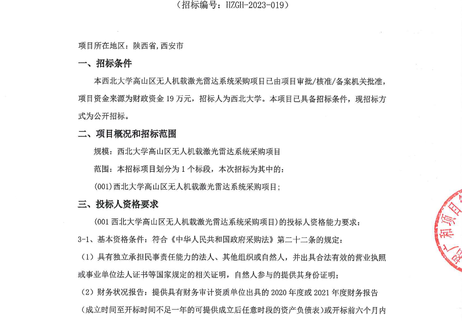 开云手机网页版登录入口高山区无人机载激光雷达系统采购项目招标公告 作者: 编辑:采购与招标办公室 时间:2023-06-14 原公告链接:http://bulletin.sntba.com/biddingBulletin/2023-06-14/572031.html