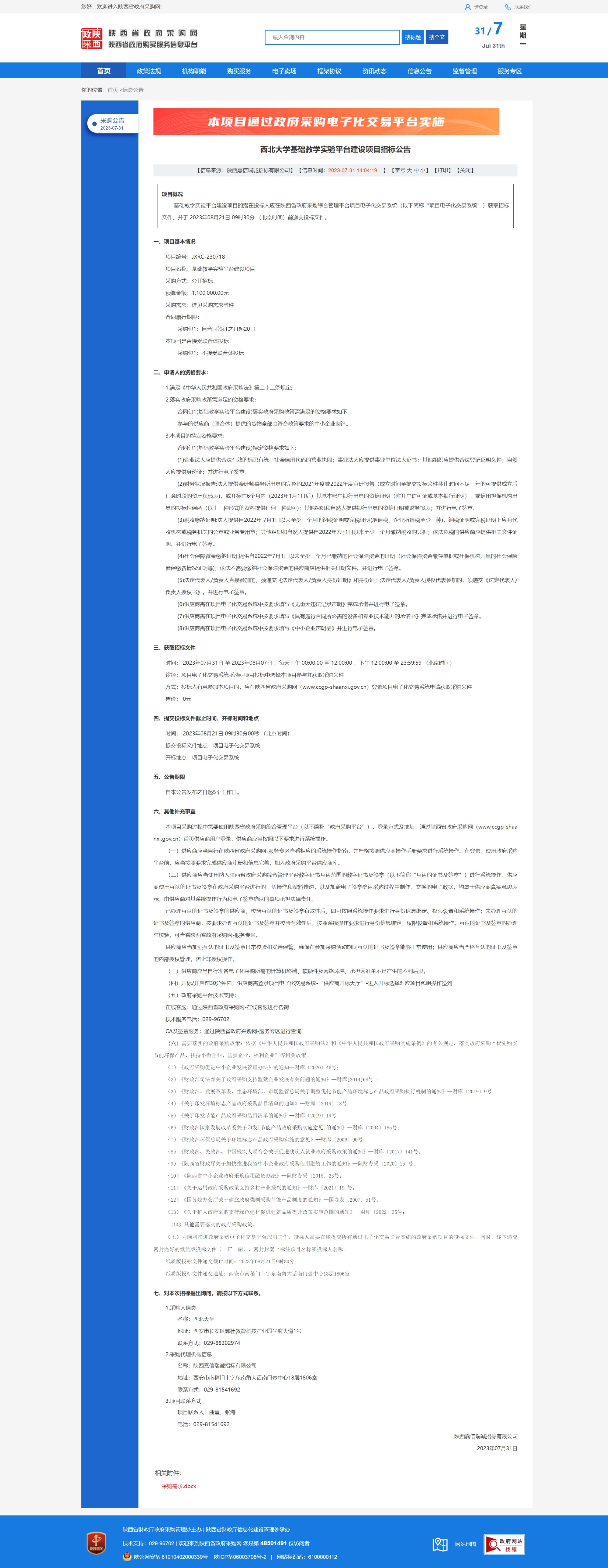 开云手机网页版登录入口基础教学实验平台建设项目招标公告 作者: 编辑:采购与招标办公室 时间:2023-07-31 原公告链接:http://www.ccgp-shaanxi.gov.cn/freecms/site/shaanxi/ggxx/info/2023/8a69c0be899a71f00189a9e854200a61.html?noticeType=001011¬iceId=3bdd4942-2f69-11ee-9a8e-08c0eb20c666