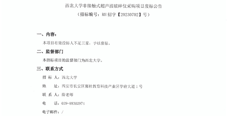开云手机网页版登录入口非接触式超声波破碎仪采购项目废标公告 作者: 编辑:采购与招标办公室 时间:2023-09-07 原公告链接:http://bulletin.sntba.com/changeBulletin/2023-09-07/651428.html
