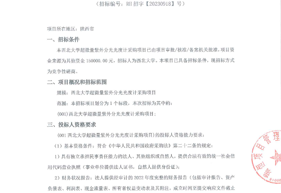 开云手机网页版登录入口超微量紫外分光光度计采购项目竞争性磋商公告 作者: 编辑:采购与招标办公室 时间:2023-09-22 原公告链接:http://bulletin.sntba.com/biddingBulletin/2023-09-22/680812.html