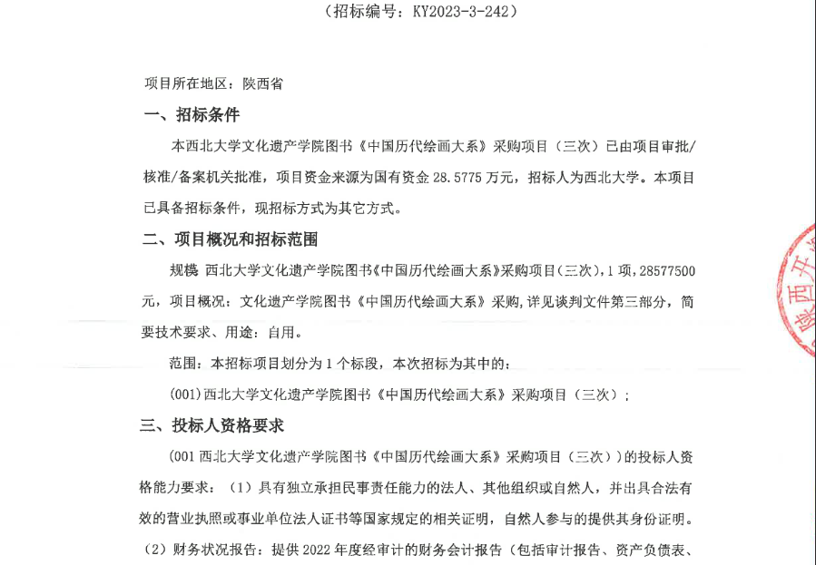开云手机网页版登录入口文化遗产学院图书《中国历代绘画大系》采购项目(三次)竞争性谈判公告 作者: 编辑:采购与招标办公室 时间:2023-10-17 原公告链接:http://bulletin.sntba.com/biddingBulletin/2023-10-17/734748.html
