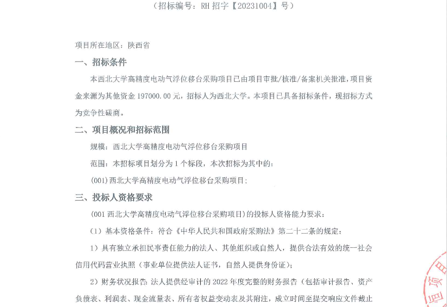 开云手机网页版登录入口高精度电动气浮位移台采购项目竞争性磋商公告 作者: 编辑:采购与招标办公室 时间:2023-10-18 原公告链接:http://bulletin.sntba.com/biddingBulletin/2023-10-17/735313.html