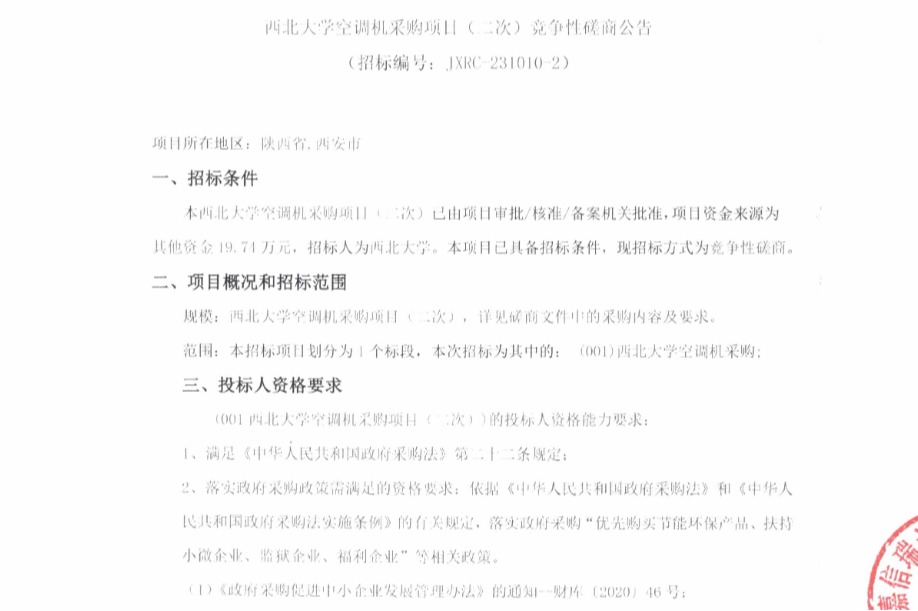 开云手机网页版登录入口空调机采购项目(二次)竞争性磋商公告