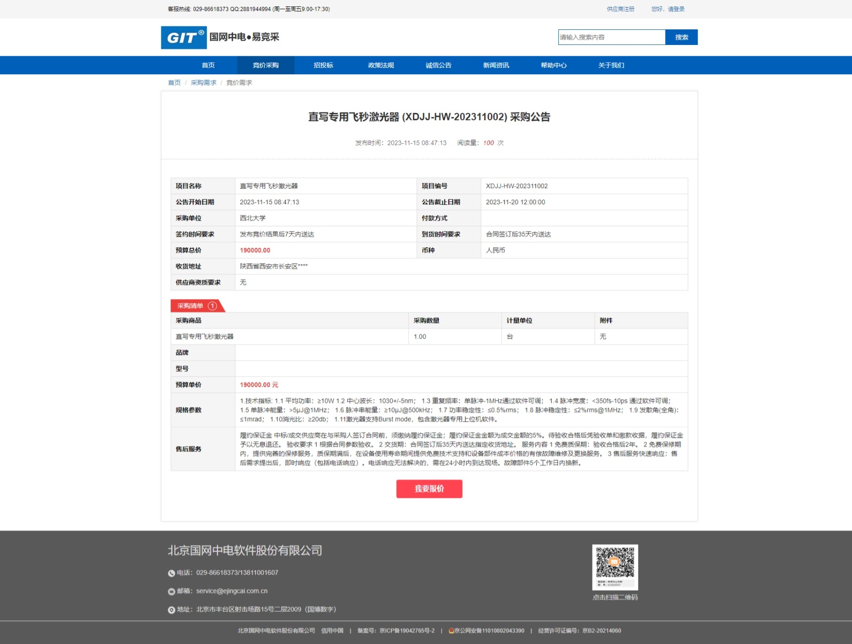 开云手机网页版登录入口直写专用飞秒激光器采购公告 作者: 编辑:采购与招标办公室 时间:2023-11-15 原公告链接:https://www.ejingcai.com.cn/site/bidding/detail/6692