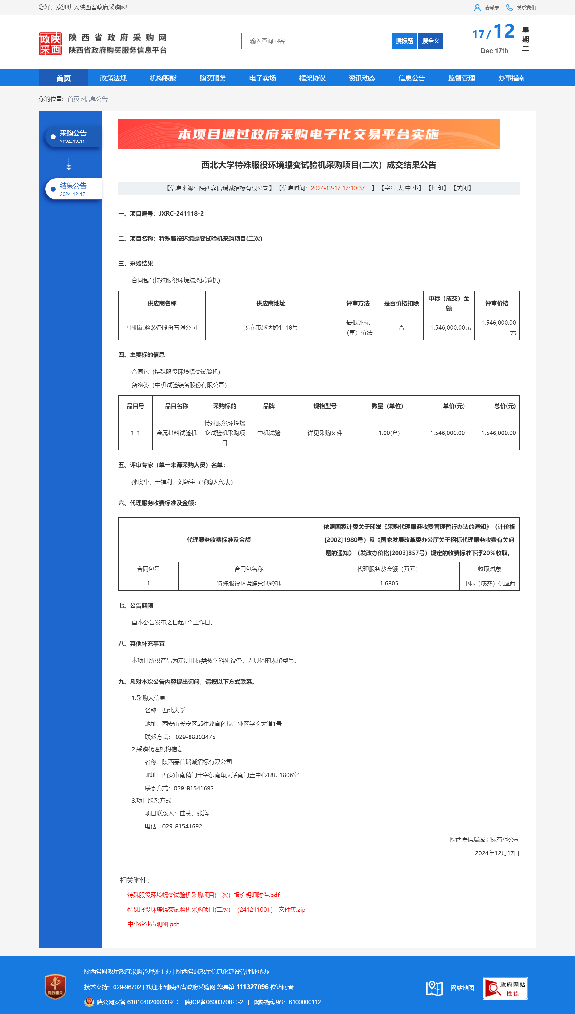 开云手机网页版登录入口特殊服役环境蠕变试验机采购项目(二次)成交结果公告 作者:采购与招标办公室 编辑: 时间:2024-12-17 原公告链接:https://www.ccgp-shaanxi.gov.cn/freecms/site/shaanxi/ggxx/info/2024/8a69c251921857370193d3cba5716502.html?noticeType=001023¬iceId=69320abb-bc58-11ef-8063-08c0eb20c666