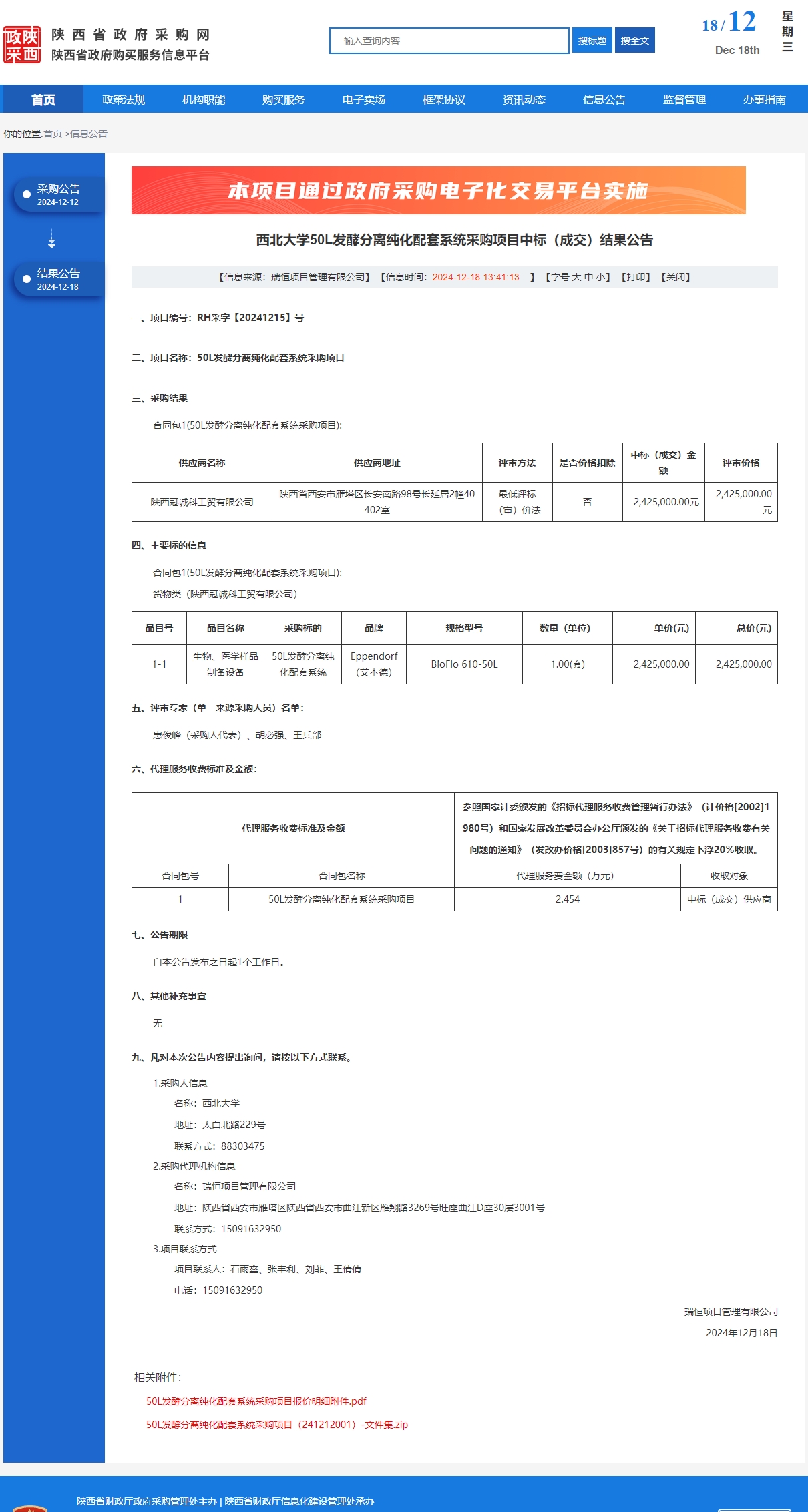 开云手机网页版登录入口50L发酵分离纯化配套系统采购项目中标(成交)结果公告 作者:采购与招标办公室 编辑: 时间:2024-12-18 原公告链接:https://www.ccgp-shaanxi.gov.cn/freecms/site/shaanxi/ggxx/info/2024/8a69c5a59218576d0193d83e10003654.html