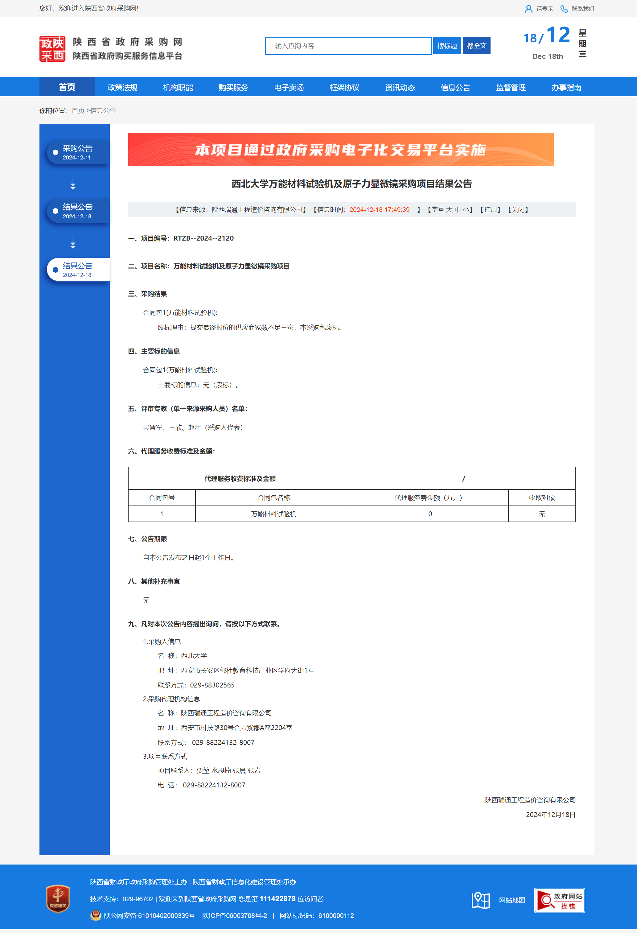 开云手机网页版登录入口万能材料试验机及原子力显微镜采购项目结果公告