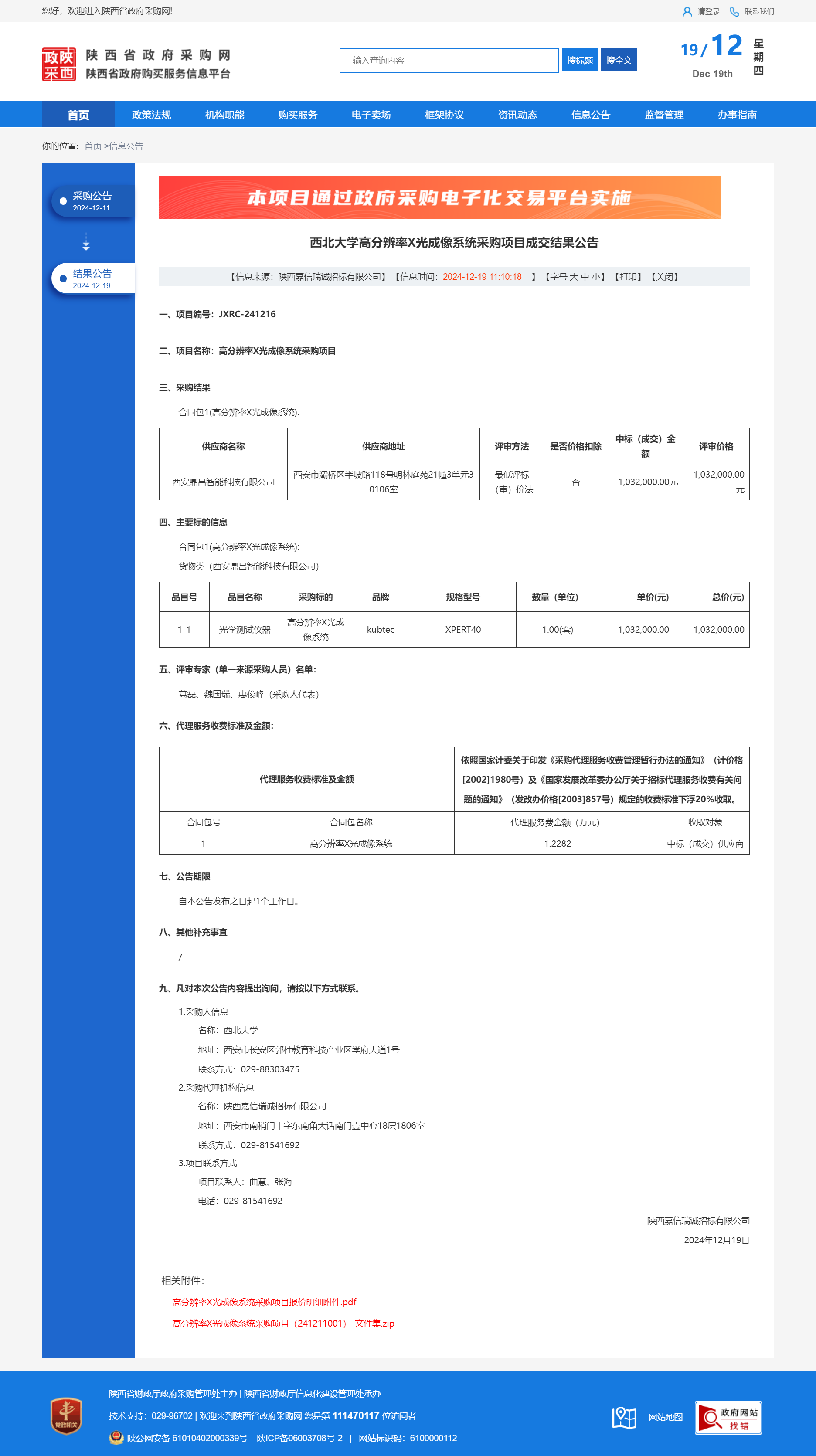 开云手机网页版登录入口高分辨率X光成像系统采购项目成交结果公告 作者:采购与招标办公室 编辑: 时间:2024-12-19 原公告链接:https://www.ccgp-shaanxi.gov.cn/freecms/site/shaanxi/ggxx/info/2024/8a69c5a59218576d0193dcdefa916c53.html?noticeType=001023¬iceId=68a09fa3-bdb8-11ef-8063-08c0eb20c666