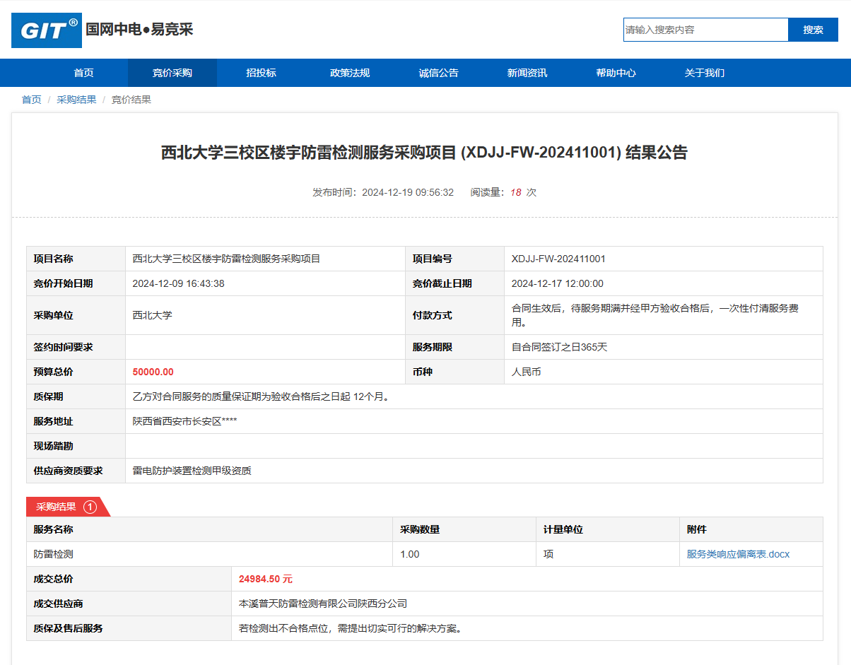 开云手机网页版登录入口三校区楼宇防雷检测服务采购项目(XDJJ-FW-202411001)竞价结果公告 作者:采购与招标办公室 编辑: 时间:2024-12-19 原公告链接:https://www.ejingcai.com.cn/site/bidding/detail/16077