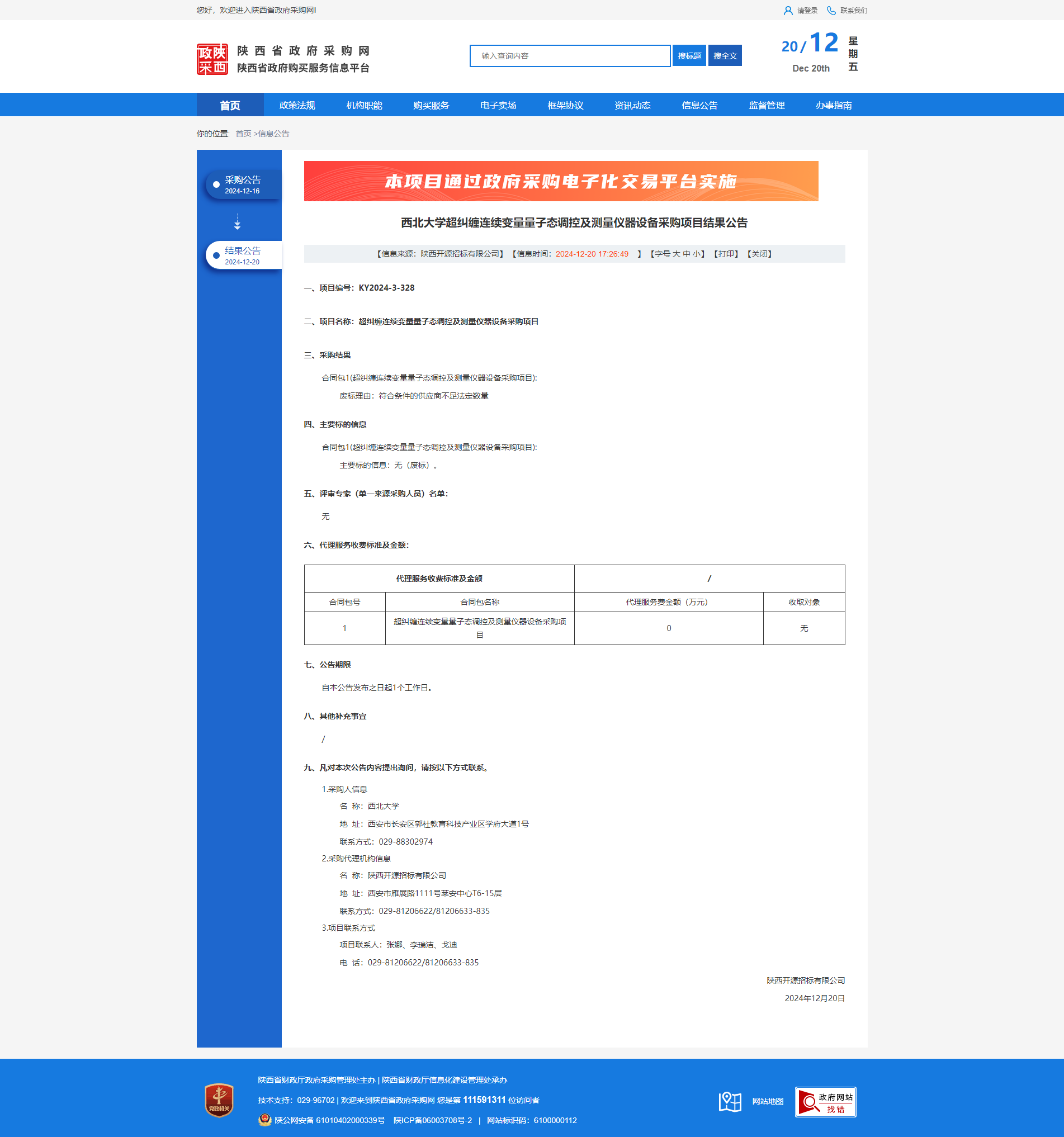 开云手机网页版登录入口超纠缠连续变量量子态调控及测量仪器设备采购项目结果公告