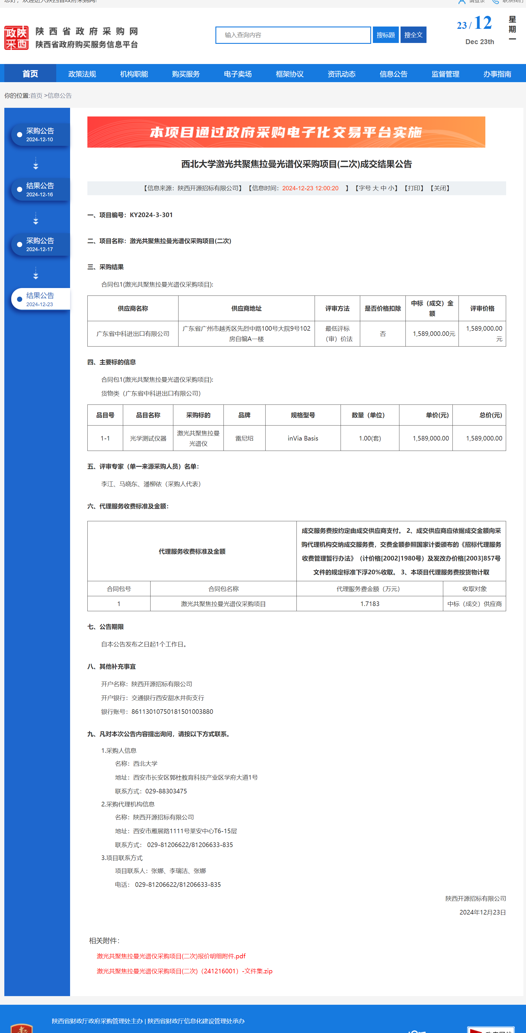 开云手机网页版登录入口激光共聚焦拉曼光谱仪采购项目(二次)成交结果公告 作者:采购与招标办公室 编辑: 时间:2024-12-23 原公告链接:https://www.ccgp-shaanxi.gov.cn/freecms/site/shaanxi/ggxx/info/2024/8a69c251921857370193f1916e5354fa.html?noticeType=001023¬iceId=1154c013-c0e4-11ef-8063-08c0eb20c666