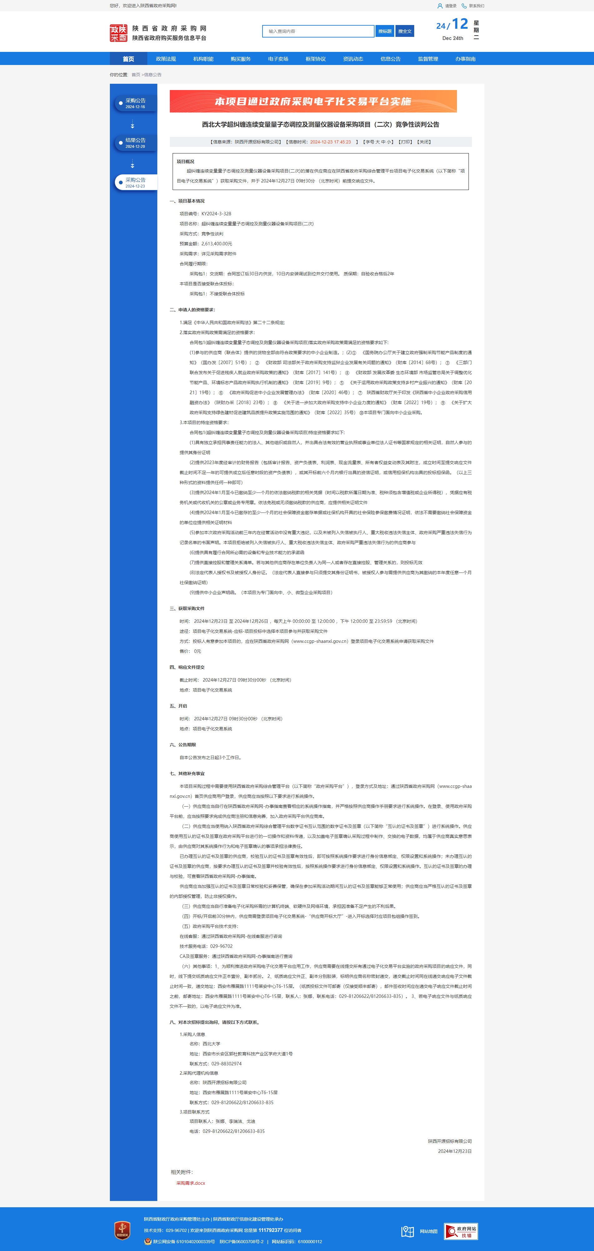 开云手机网页版登录入口超纠缠连续变量量子态调控及测量仪器设备采购项目(二次)竞争性谈判公告