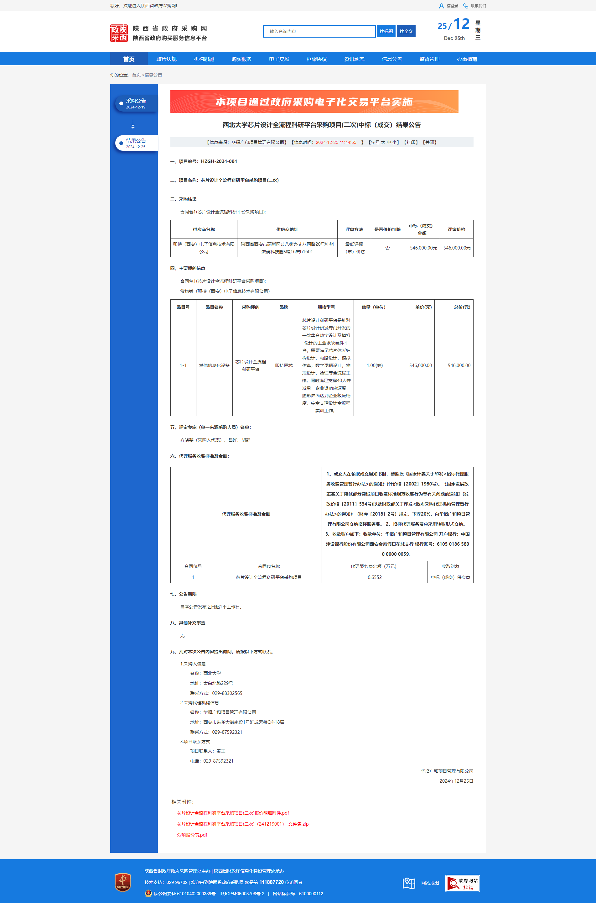 开云手机网页版登录入口芯片设计全流程科研平台采购项目(二次)中标(成交)结果公告