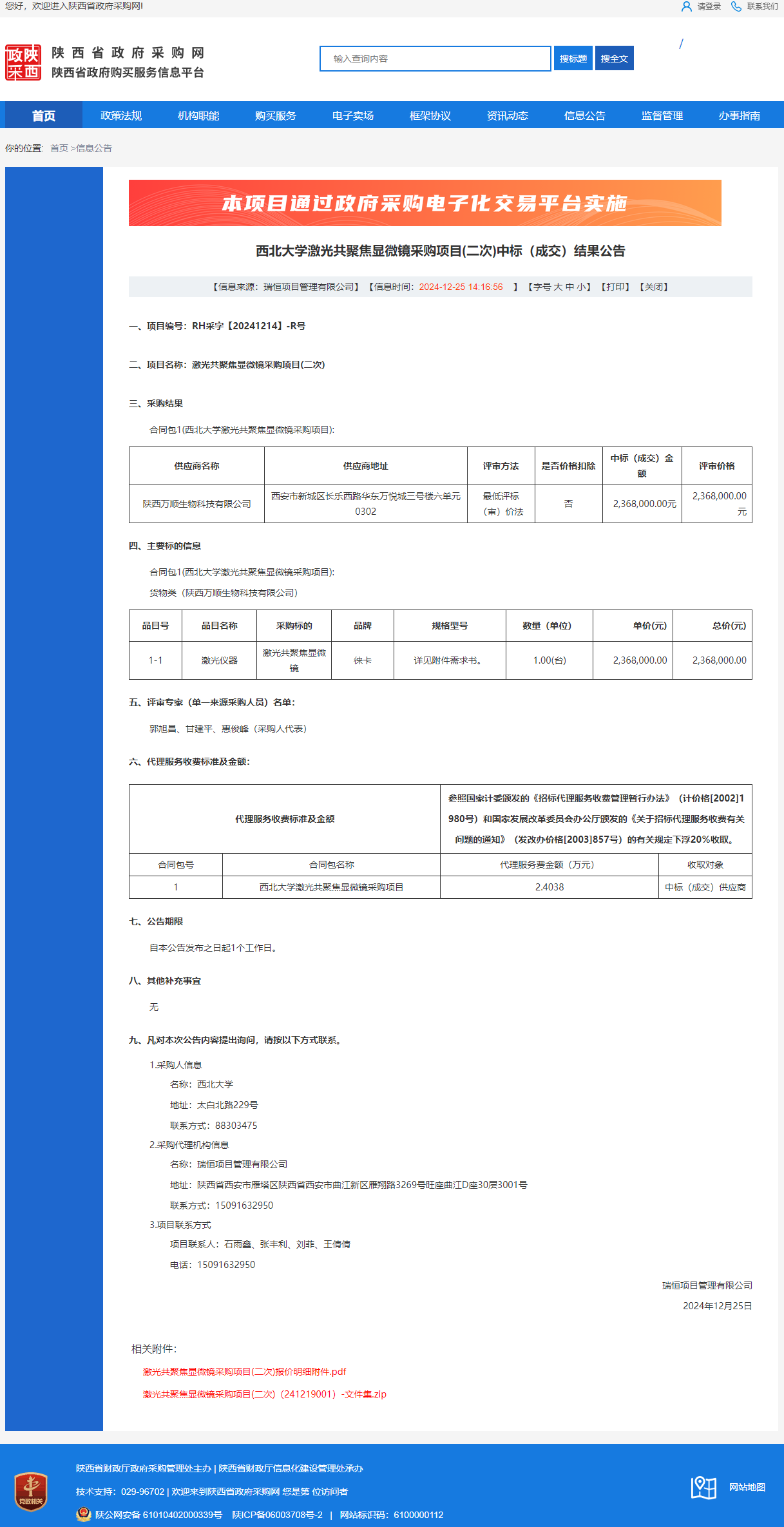 开云手机网页版登录入口激光共聚焦显微镜采购项目(二次)中标(成交)结果公告 作者:采购与招标办公室 编辑: 时间:2024-12-25 原公告链接:http://www.ccgp-shaanxi.gov.cn/freecms/site/shaanxi/ggxx/info/2024/8a69c251921857370193fc6fdab73efc.html