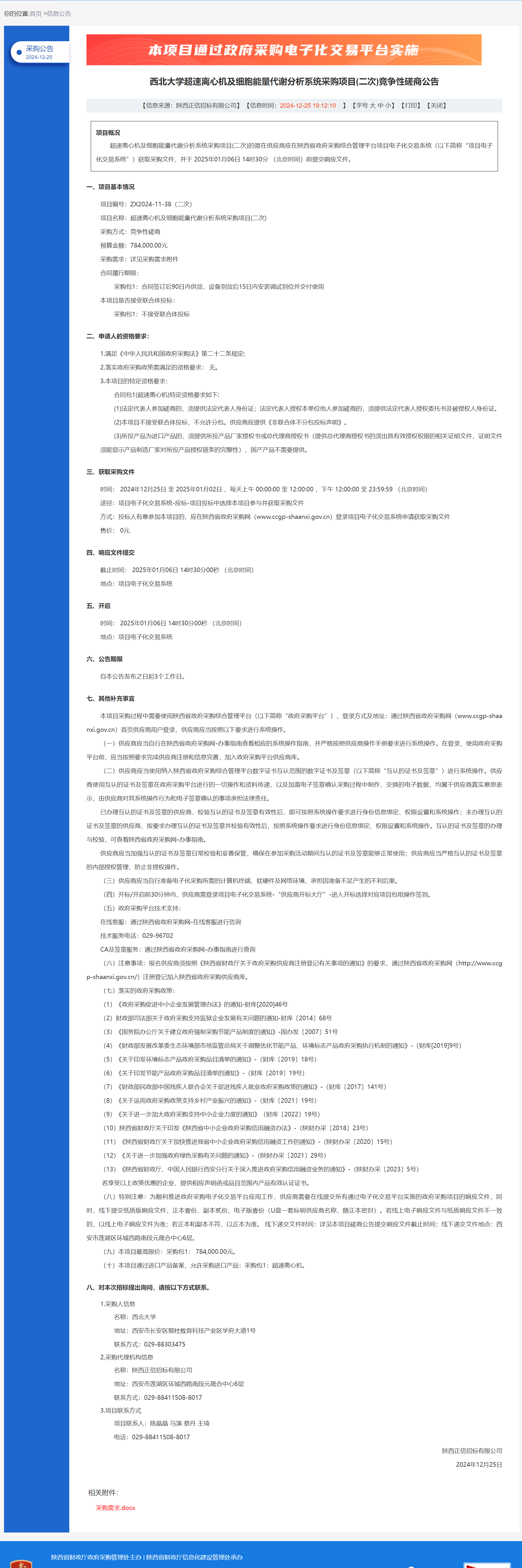开云手机网页版登录入口超速离心机及细胞能量代谢分析系统采购项目(二次)竞争性磋商公告 作者:采购与招标办公室 编辑: 时间:2024-12-25 原公告链接:https://www.ccgp-shaanxi.gov.cn/freecms/site/shaanxi/ggxx/info/2024/8a69c44e9218572b0193fd6e7f5f4622.html?noticeType=001016¬iceId=bb6eaae2-c2b2-11ef-8063-08c0eb20c666