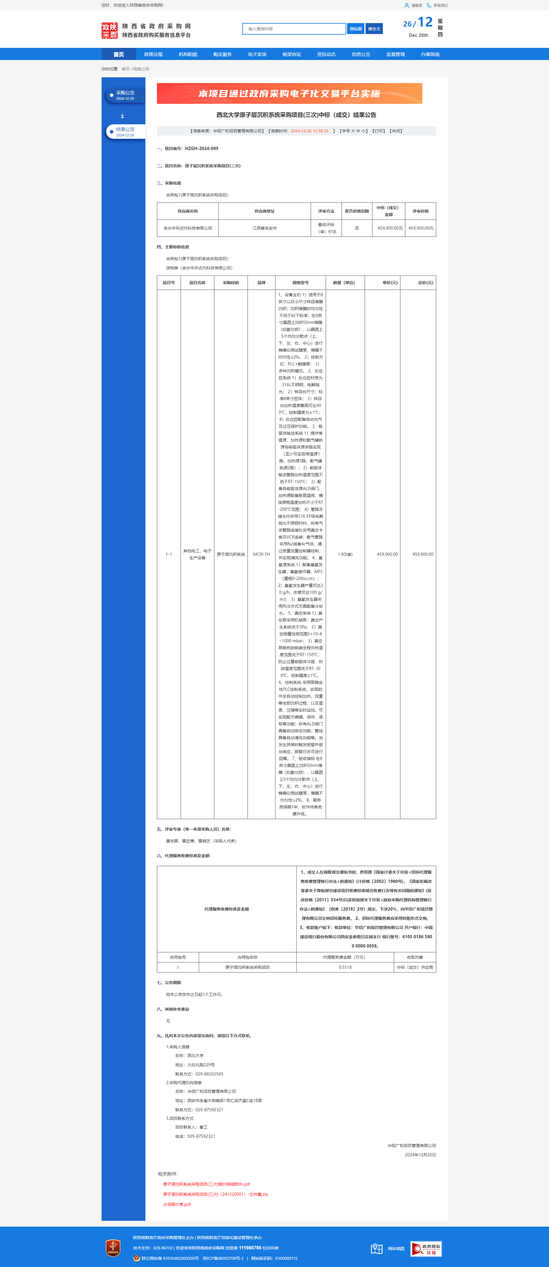 开云手机网页版登录入口原子层沉积系统采购项目(三次)中标(成交)结果公告