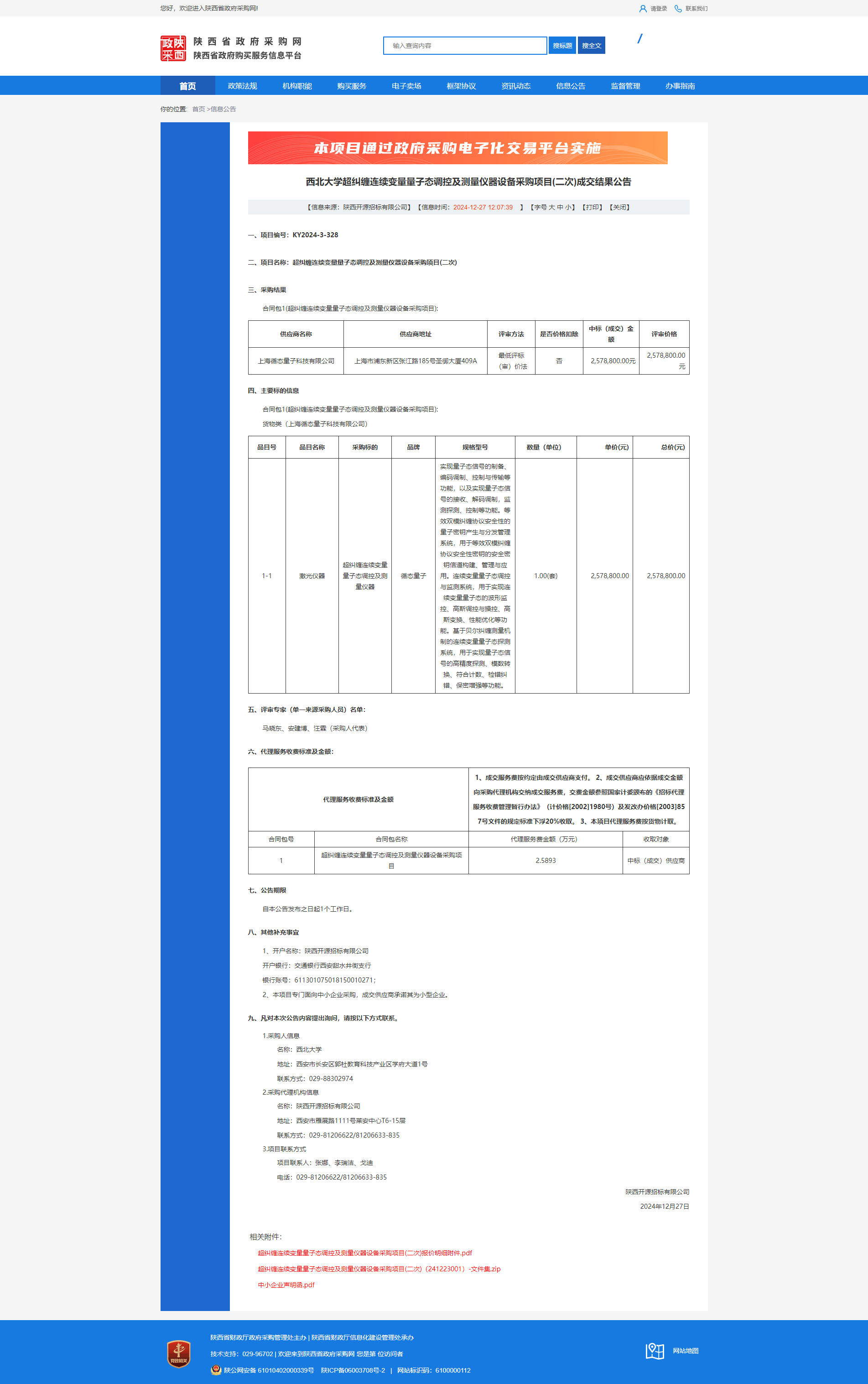 开云手机网页版登录入口超纠缠连续变量量子态调控及测量仪器设备采购项目(二次)成交结果公告