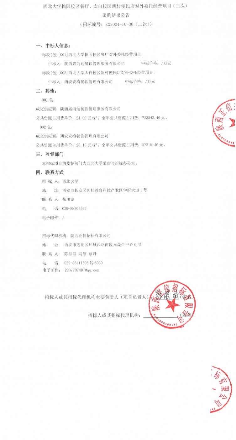 开云手机网页版登录入口桃园校区餐厅、太白校区新村便民店对外委托经营项目(二次)采购结果公告