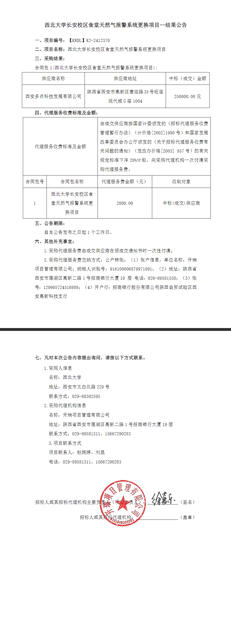 开云手机网页版登录入口长安校区食堂天然气报警系统更换项目结果公告