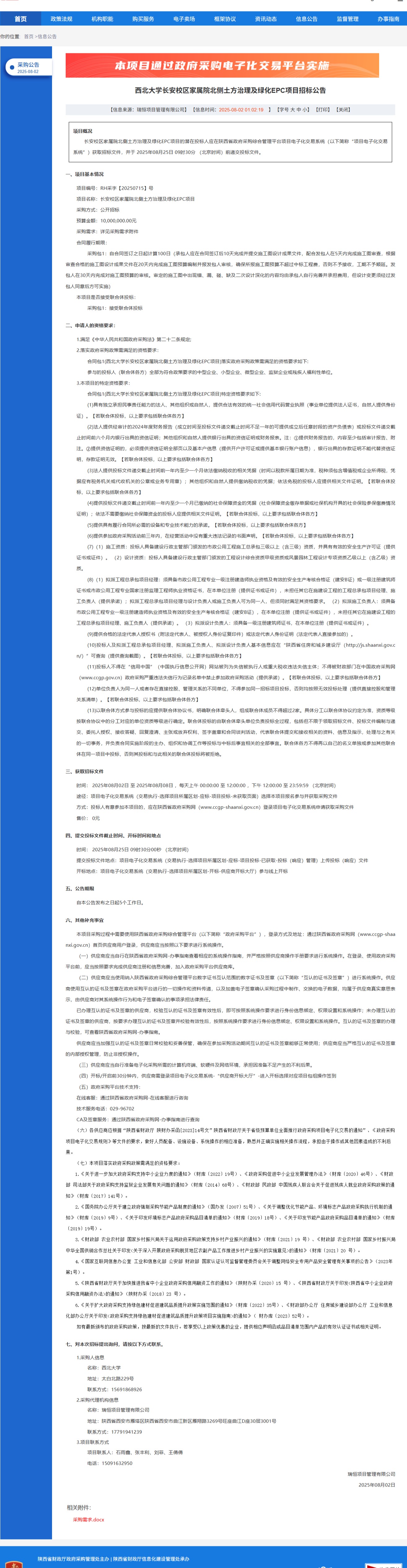 开云手机网页版登录入口长安校区家属院北侧土方治理及绿化EPC项目招标公告 作者: 编辑:党丹珩 时间:2025-08-02 公告地址:http://www.ccgp-shaanxi.gov.cn/freecms/site/shaanxi/ggxx/info/2025/8a69c7f19860ef060198668ebf817f37.html?noticeType=001011¬iceId=537d203b-6efb-11f0-8063-08c0eb20c666