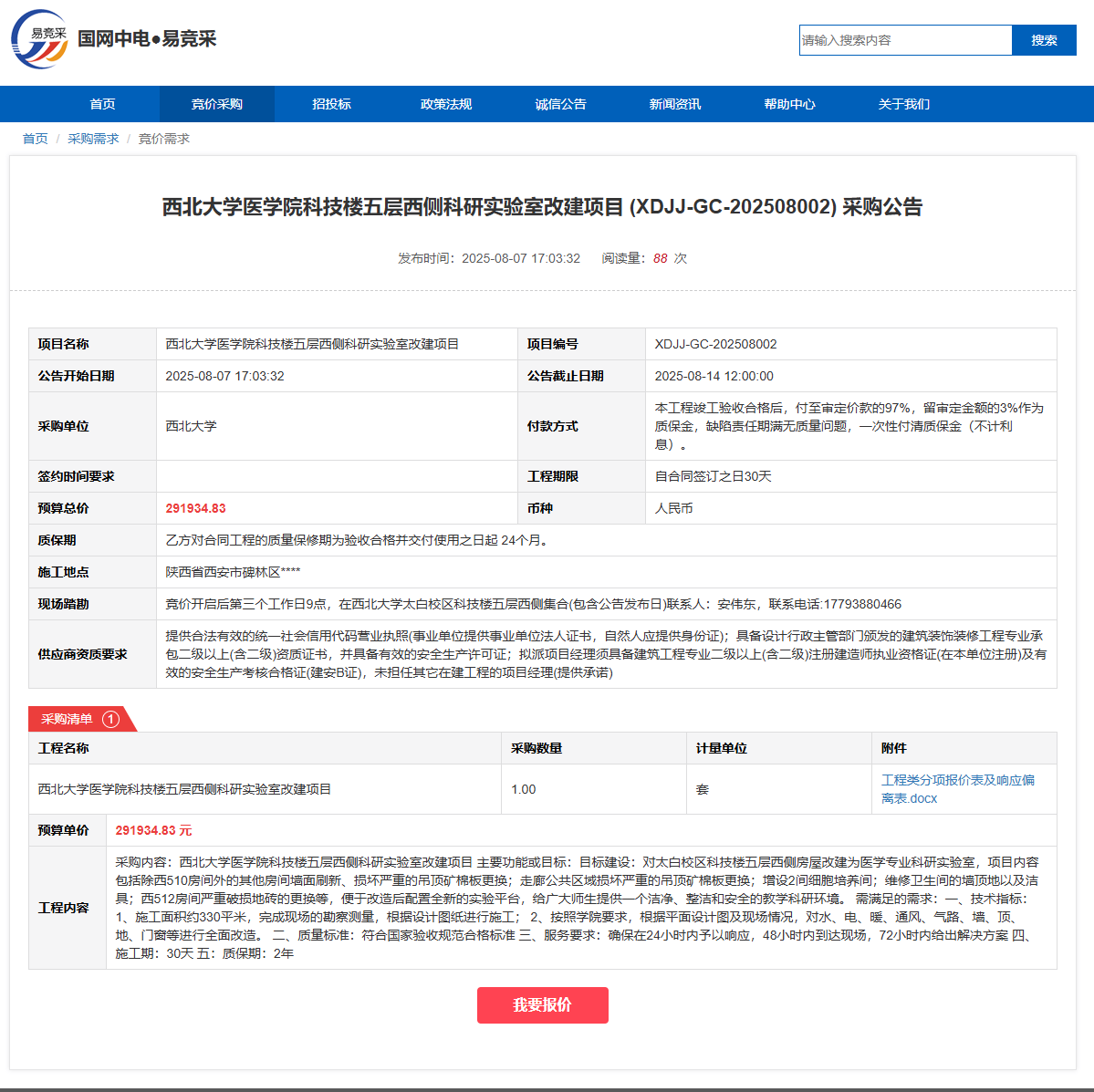 开云手机网页版登录入口医学院科技楼五层西侧科研实验室改建项目 (XDJJ-GC-202508002) 采购公告 作者: 编辑:党丹珩 时间:2025-08-08 公告地址:https://www.ejingcai.com.cn/site/bidding/detail/19914