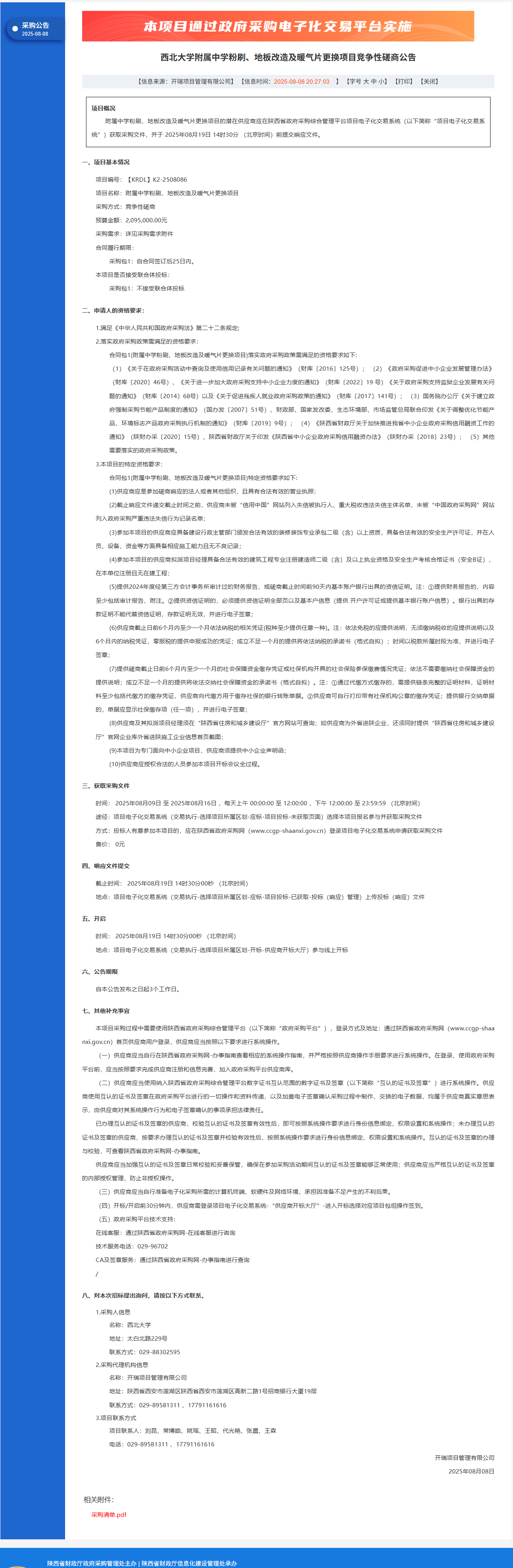 开云手机网页版登录入口附属中学粉刷、地板改造及暖气片更换项目竞争性磋商公告 作者: 编辑:党丹珩 时间:2025-08-08 公告地址:https://www.ccgp-shaanxi.gov.cn/freecms/site/shaanxi/ggxx/info/2025/8a69c4d59860f6420198899b50a47f9c.html
