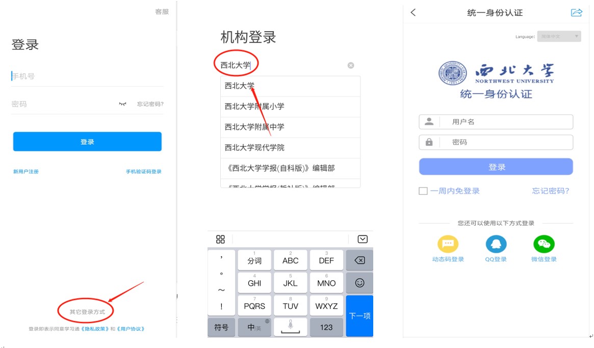 5.下载过后,进入登录页面——“其它登录方式”——单位栏输入“开云手机网页版登录入口”——跳转到学校统一身份认证登录。