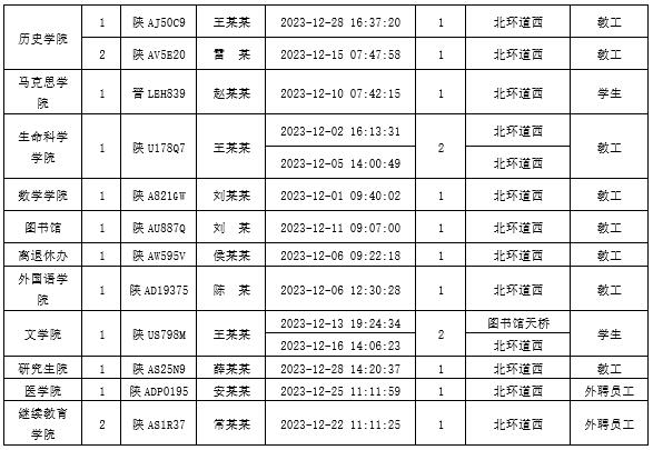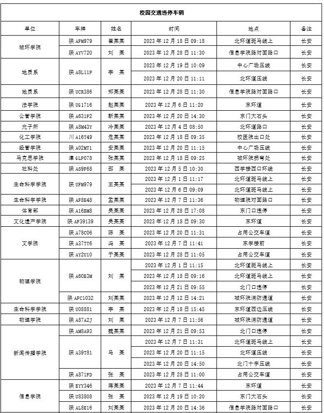 为加强校内道路交通安全管理,规范校内交通秩序,根据《开云手机网页版登录入口校园道路交通管理办法》有关要求,现将2023年12月校园交通违章车辆予以曝光,所在单位负责对本单位违章师生员工进行交通安全教育和日常管理。