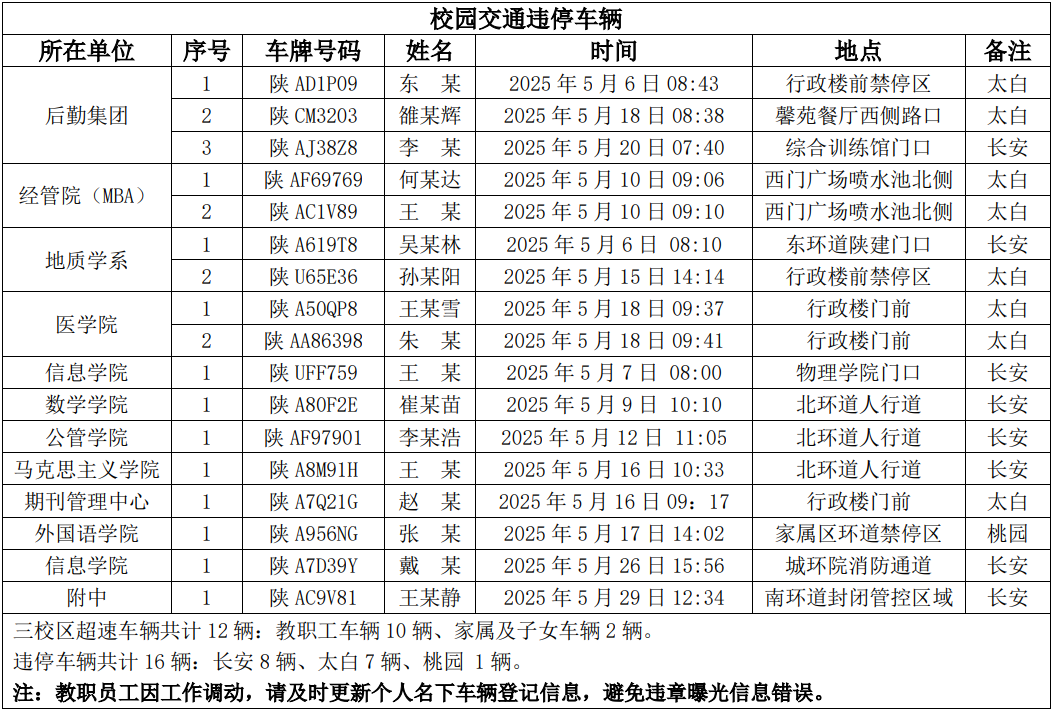 为进一步加强校园交通管理,保障校园交通安全有序,维护学校正常的教学、科研和生活秩序,切实保护师生员工的人身财产安全,根据《开云手机网页版登录入口校园交通安全管理规定》的相关要求,现将2025年5月校园交通违章车辆予以曝光,具体要求与违章信息如下: