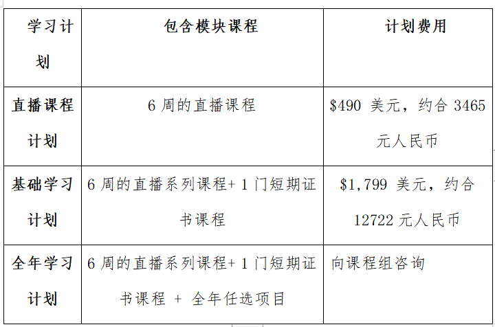 6周(24课时)直播课程体验不同主题,与教授导师互动,开拓视野。