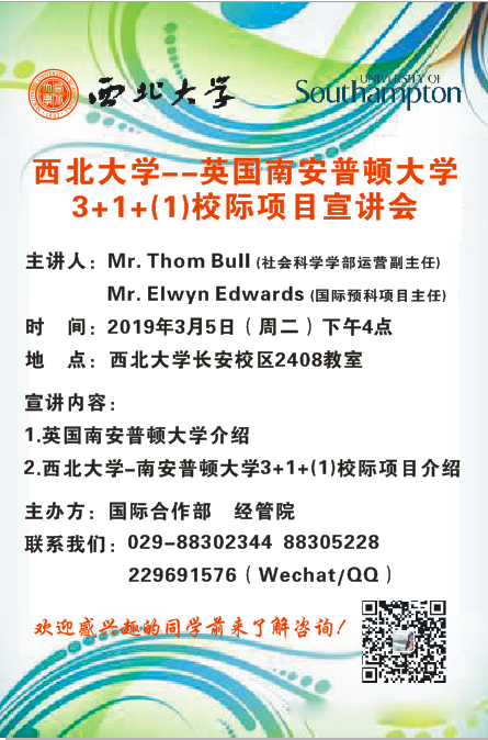 开云手机网页版登录入口-英国南安普顿大学3+1+(1)校际项目宣讲会