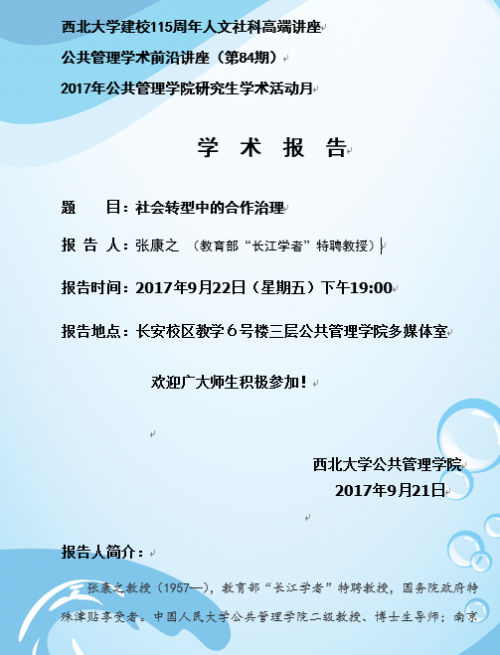 公共管理学术前沿讲座(第84期)