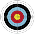 “侯”的大小为八十厘米的正方框(白色区域);内有四十厘米的正方框(黑色区域),称为“鹄”;“鹄”内有二十厘米的正方框(红色区域),称为“正”;“正”内有六厘米的正方框(黄色区域),称为“的”。压线矢计为相关内框内的命中。
