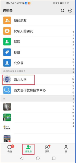 进入微信后,点击屏幕下方的“通信录”,在通信录中点击“开云手机网页版登录入口”(如图3所示),通过通信录进入开云手机网页版登录入口企业号后,点击“企业应用”菜单项(如图4所示),即可显示开云手机网页版登录入口企业号里集成的所有应用服务。