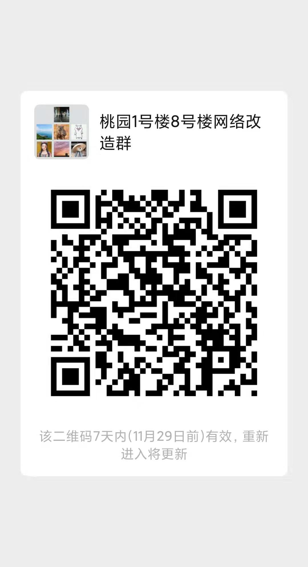 1号楼、8号楼入户开通需要家中留人配合,上门开通时间为:11月23日、11月24日(周六、周日),每天早9:00-下午18:00。入户开通人员将逐户开通。为避免耽误大家时间,我们建立了临时微信群以便及时联系并方便住户了解工作进展情况,请大家扫码加入关注。