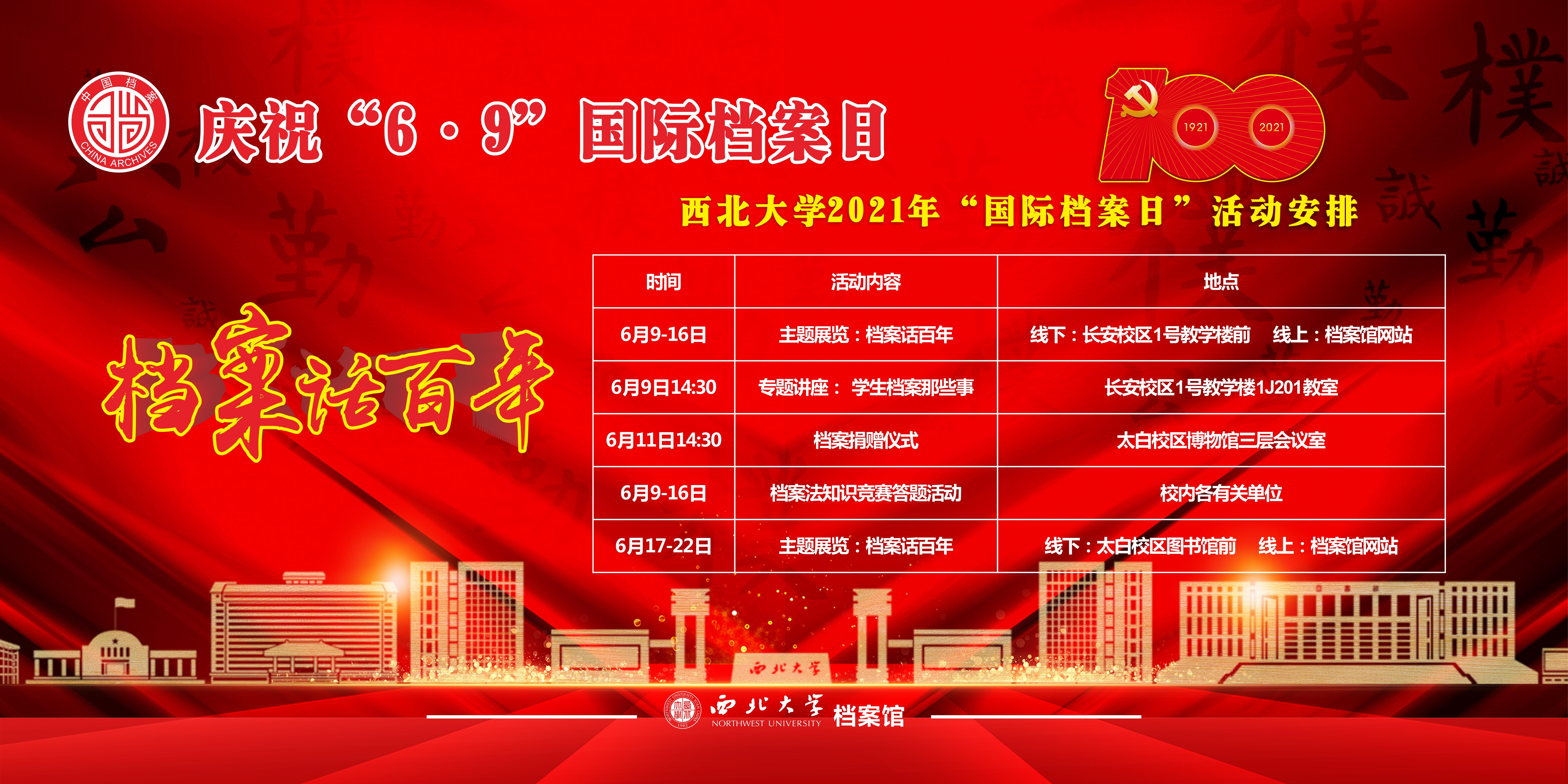 开云手机网页版登录入口2021年国际档案日活动安排 作者: 编辑:孙可佳 时间:2021-06-08 为庆祝中国共产党成立100周年,宣传贯彻落实新修订的《中华人民共和国档案法》,不断增强全校师生档案意识,助力学校“双一流”建设,积极发挥档案工作“记载历史、传承文明、服务未来”的作用和档案“存凭、留史、资政、育人”的功能,讲好“西大故事”,根据国家档案局《2021年全国档案宣传工作要点》等有关精神,学校举办第七届以“档案话百年”为主题的国际档案日系列宣传活动。具体活动安排如下,欢迎广大师生踊跃参加!