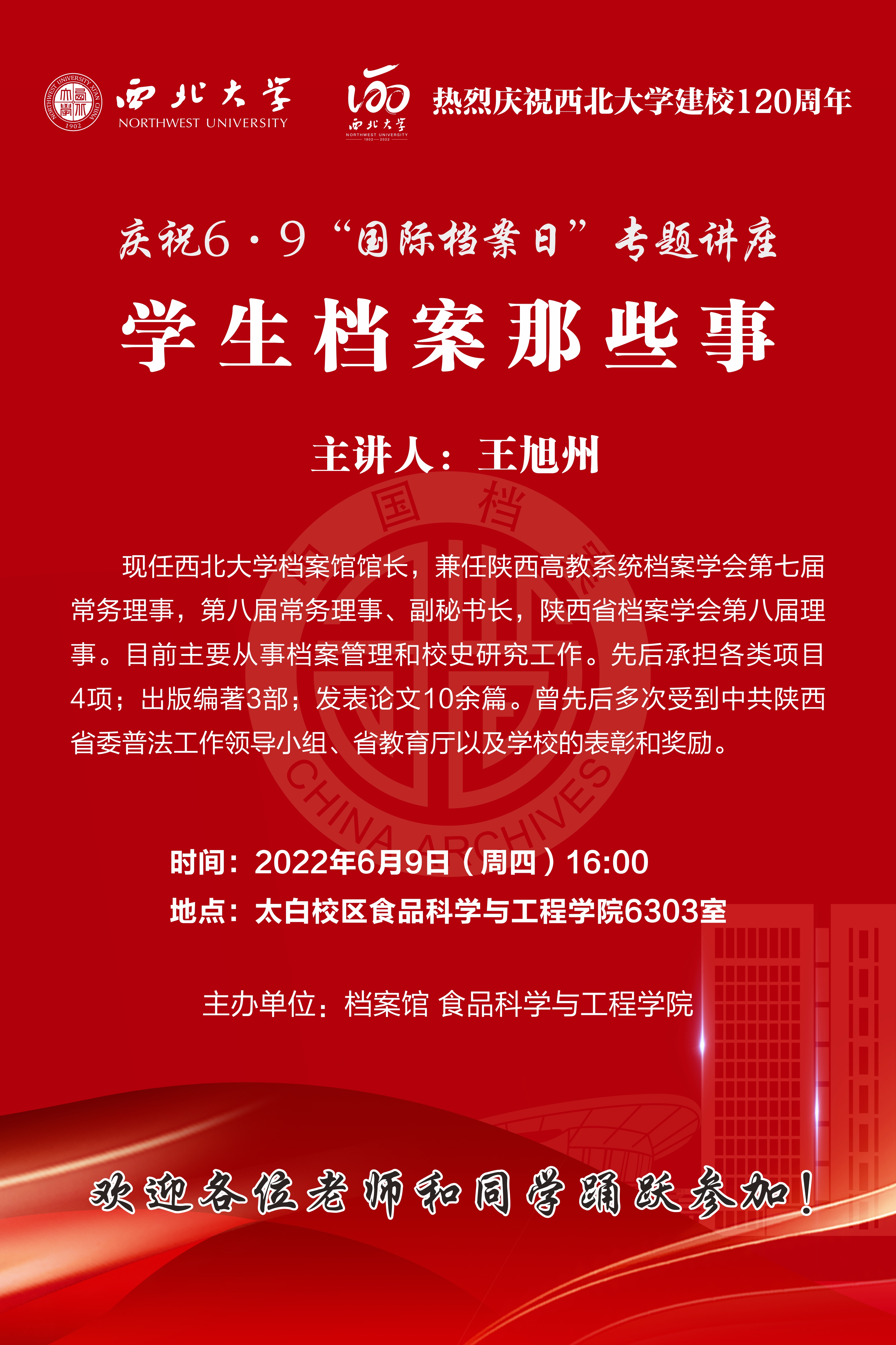 2022年“国际档案日”活动之专题讲座“学生档案那些事”