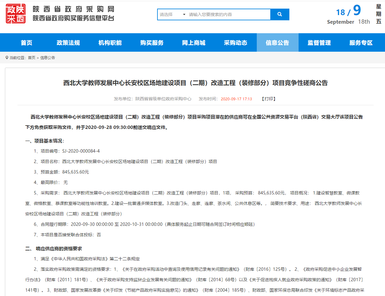 开云手机网页版登录入口教师发展中心长安校区场地建设项目(二期)改造工程(装修部分)项目竞争性磋商公告 作者: 编辑:季兴帅 时间:2020-09-18 公告原文链接:http://www.ccgp-shaanxi.gov.cn/notice/noticeDetail.do?noticeguid=8a85be327394d739017499e718111004
