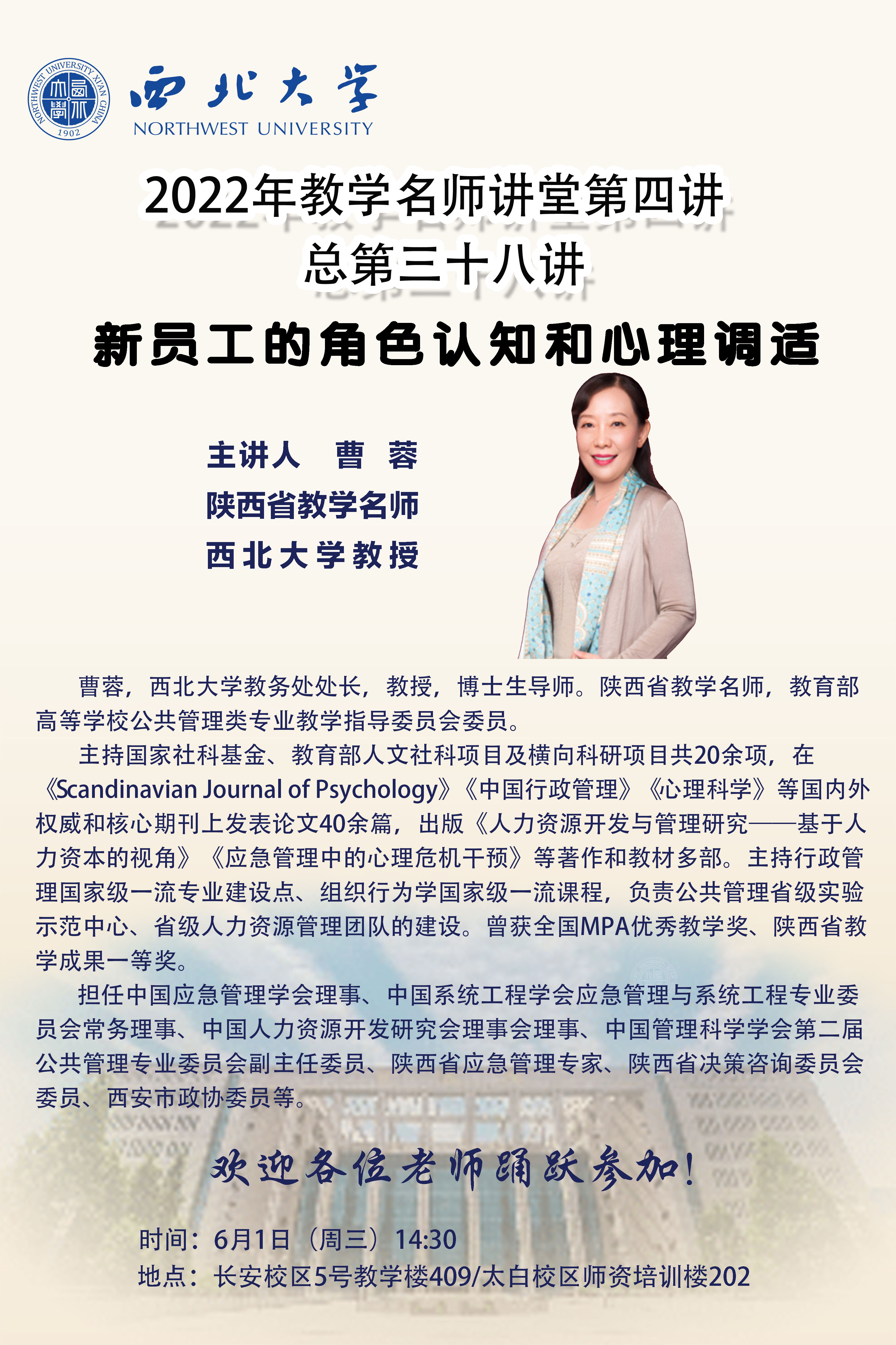 开云手机网页版登录入口2022年教学名师讲堂第四讲——新员工的角色认知和心理调适