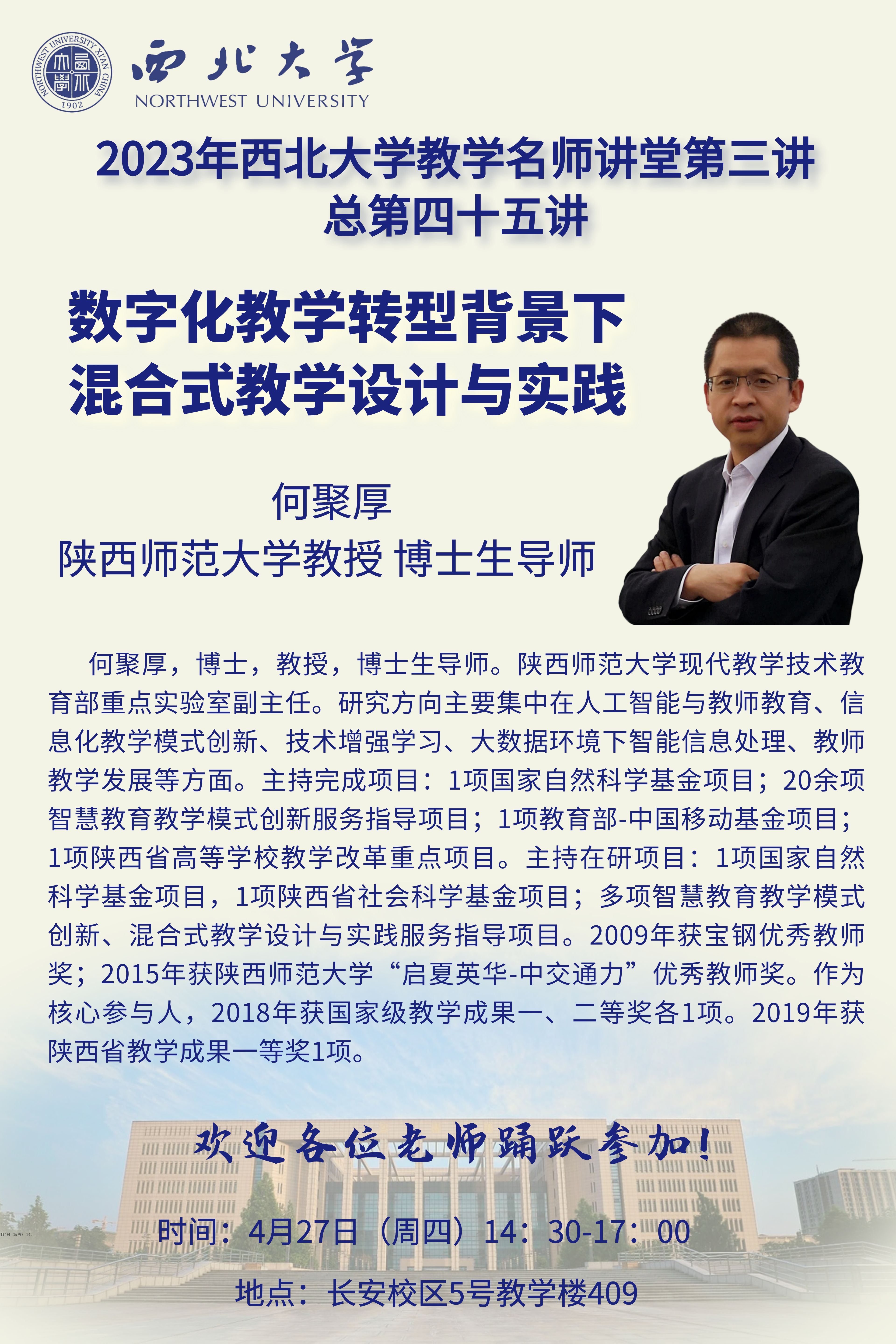2023年开云手机网页版登录入口教学名师讲堂第三讲 ——数字化教学转型背景下混合式教学设计与实践